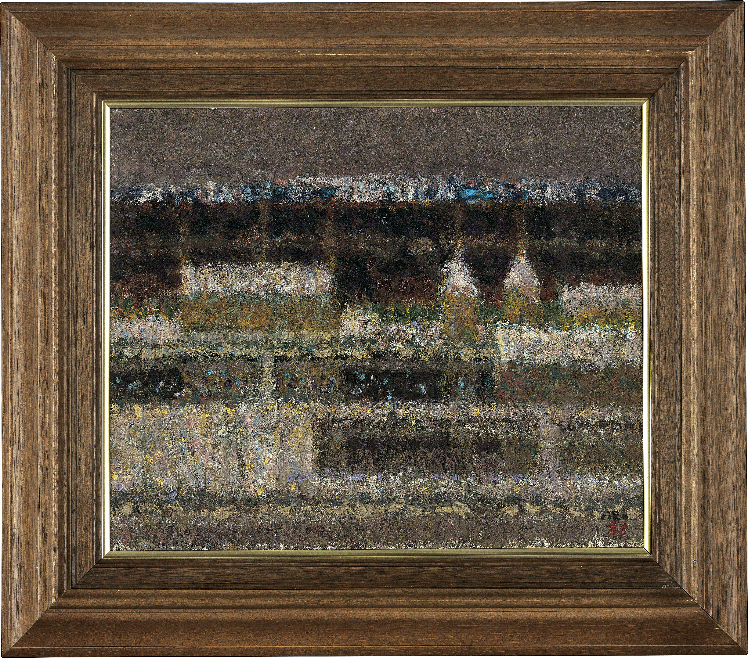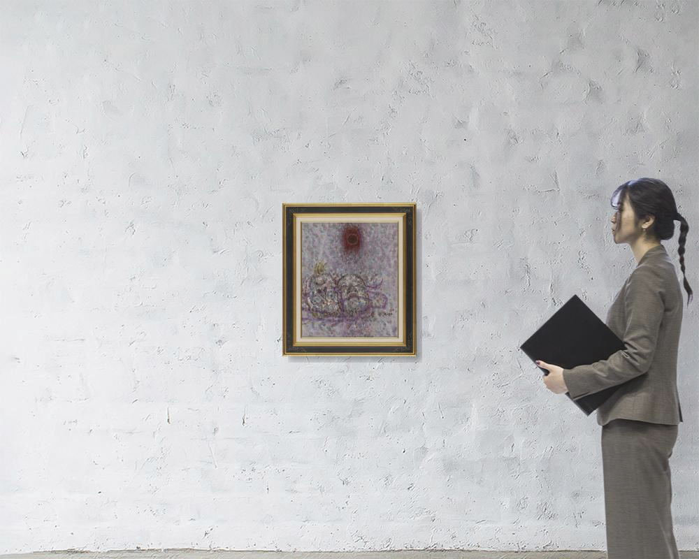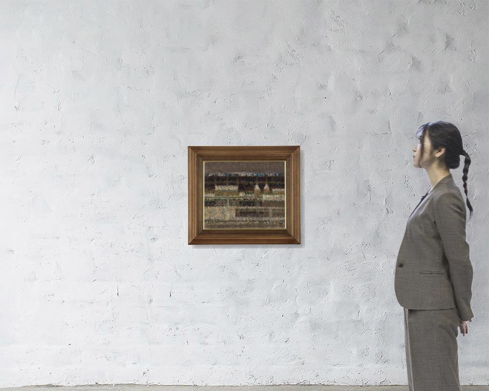 1970年 キャンバスに油彩 F8号 サイン有 キャンバス裏にもサイン、タイトル、年記 画面数ヶ所に浅いヒビ もう1点は【田園雪景】(1967年 画面数ヶ所にヒビ、縁沿い1ヶ所に小さな剥落 他は表題と同データ) 2点共額付