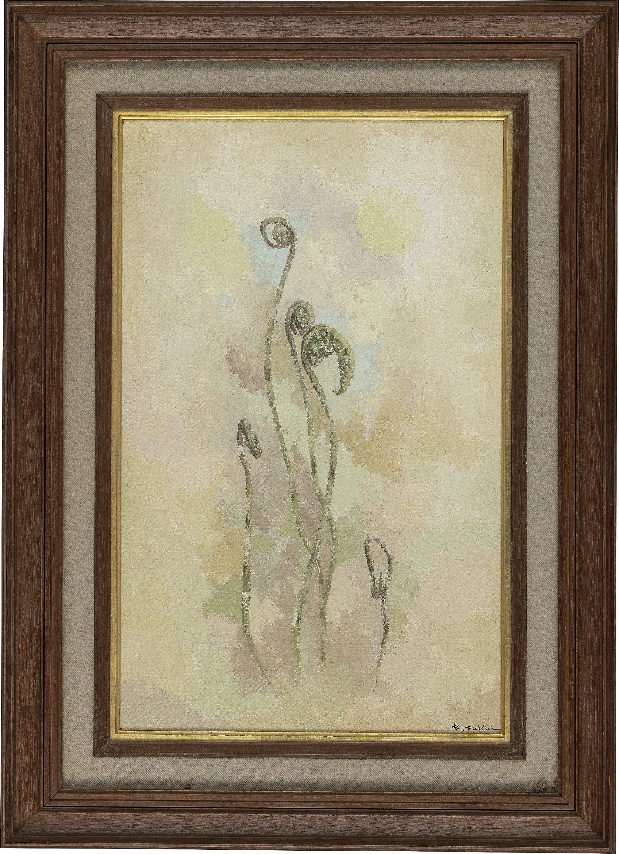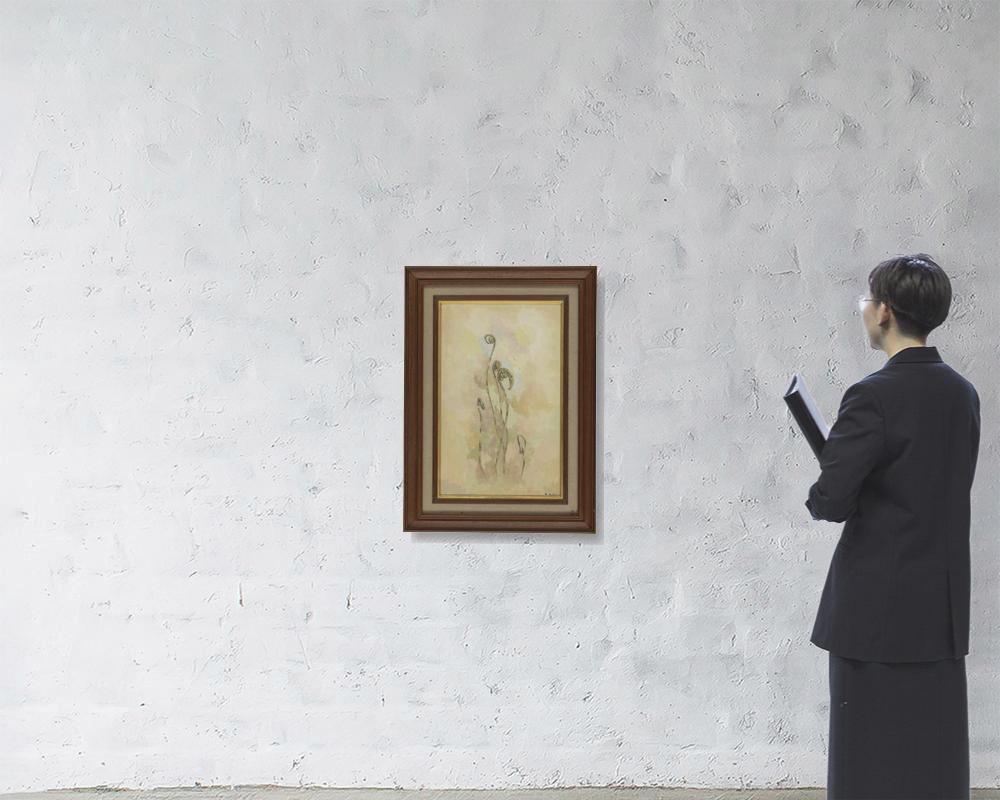 キャンバスに油彩 M10号 サイン有 「ギャルリーためなが」シール 画面四隅にピンホール 額付