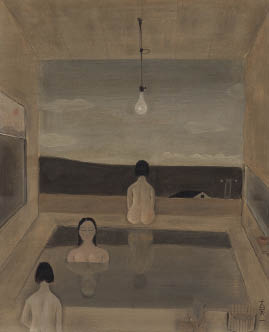 キャンバスに油彩 F3号 サイン有 画面全体に薄いヤケ、所々にヒビ 額付