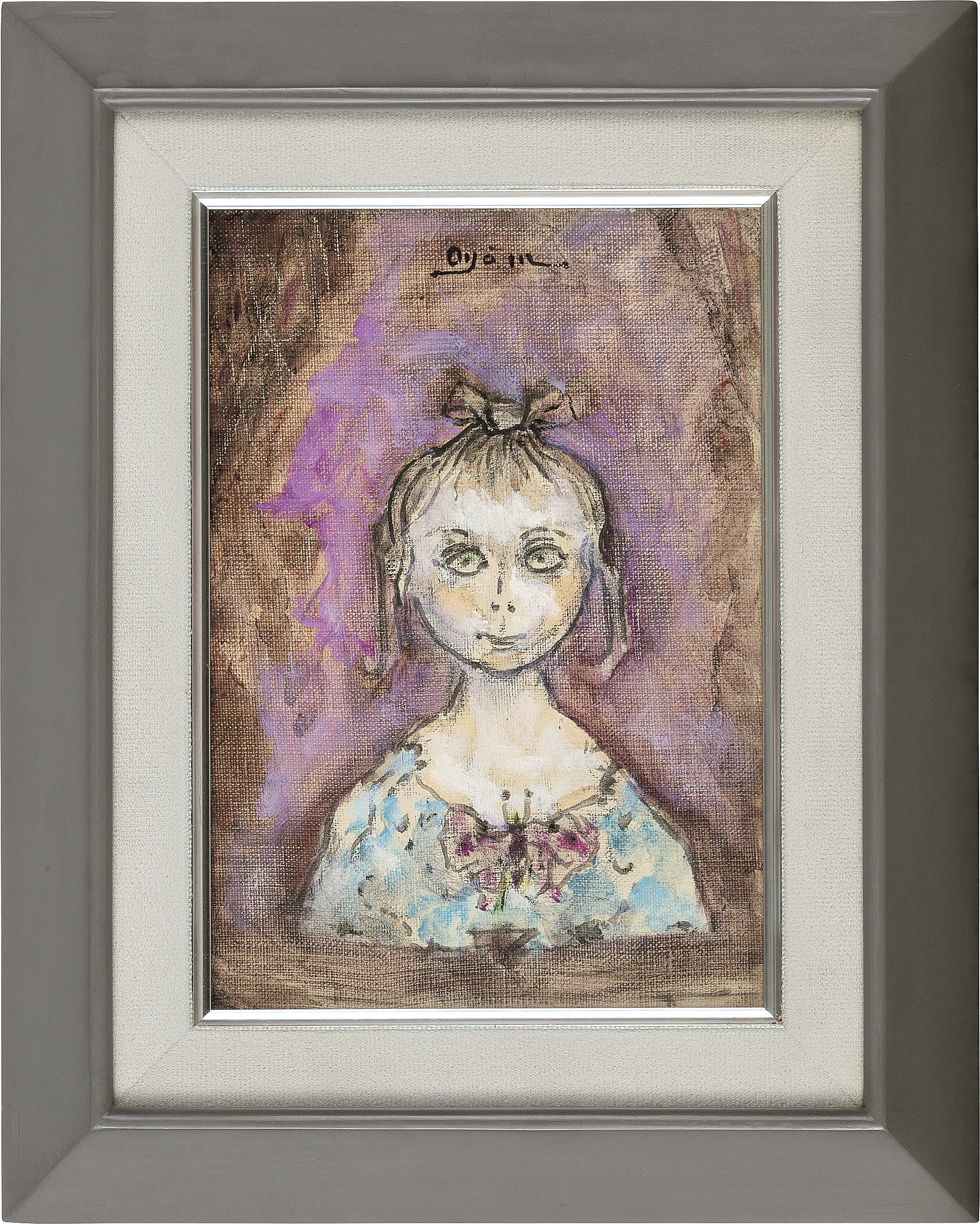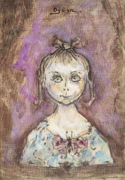 キャンバスに油彩 サムホール サイン有 キャンバス裏木枠にもサイン、タイトル もう1点は【子供の情景IV】(紙に水彩 28.8×37.9(紙)cm サイン有 紙裏にもサイン、タイトル) 2点共額付