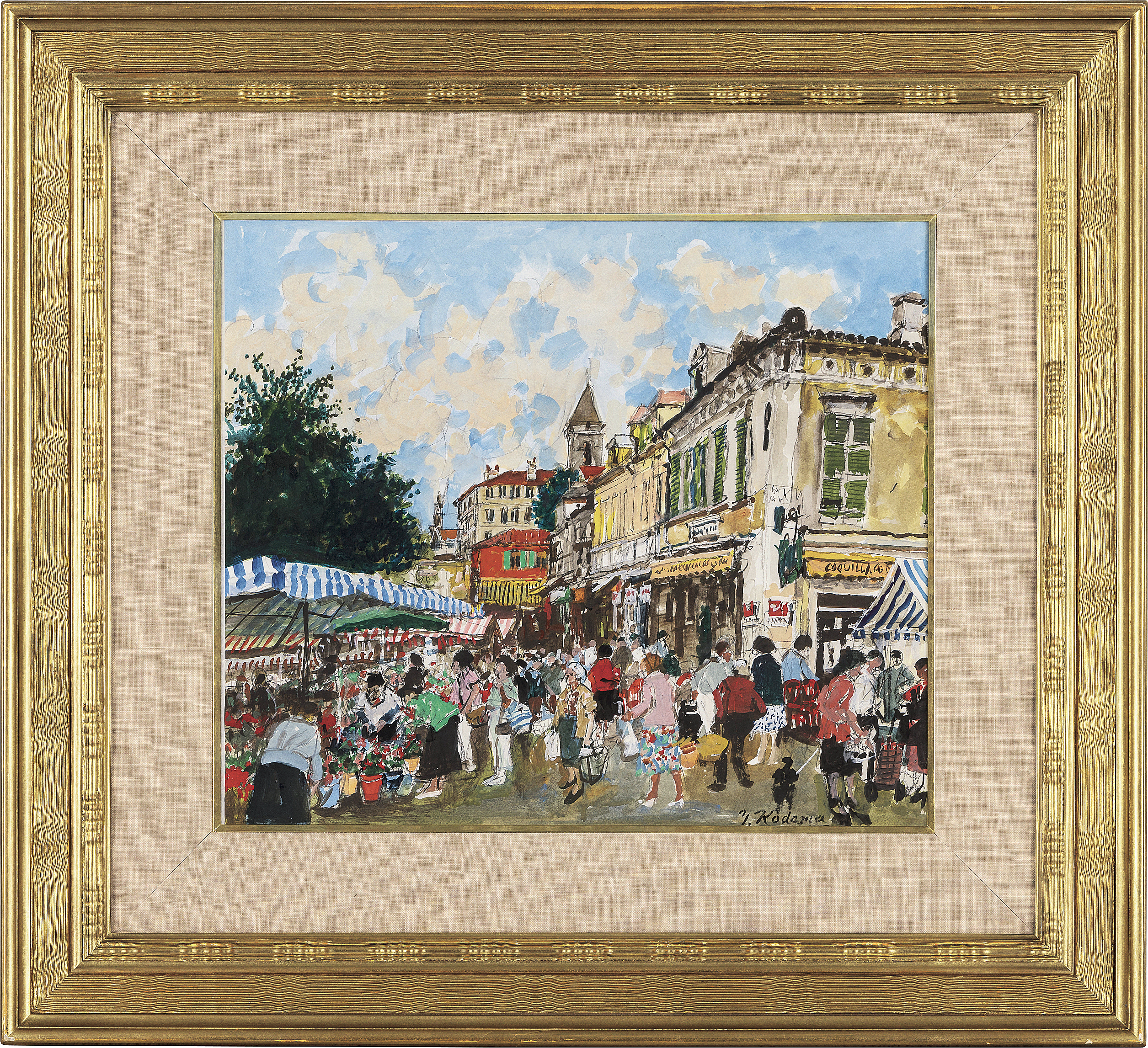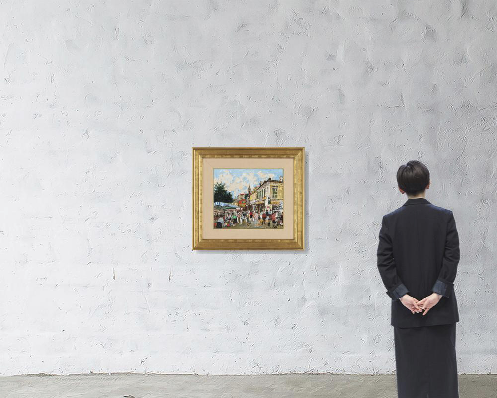 紙にコンテ・グワッシュ 45.6×53cm サイン有 作品は裏面四辺をパネルに貼付 画面数ヶ所にわずかな波打ち、浅いヒビ 額付