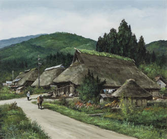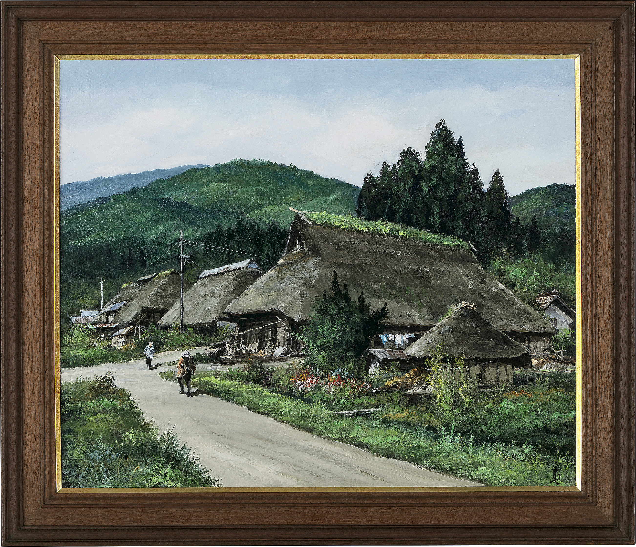 キャンバスに油彩 F20号 サイン有 キャンバス裏にもサイン、タイトル 画面所々にヒビ、数ヶ所に絵具の縮み 額付