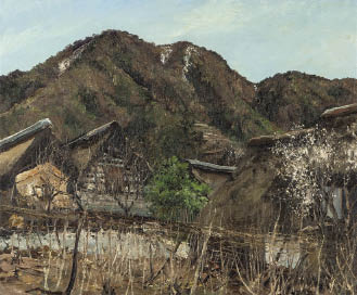 パネルに貼付したキャンバスに油彩 50×60.5cm(F12号) サイン有 共シール 画面所々に浅いヒビ 額付