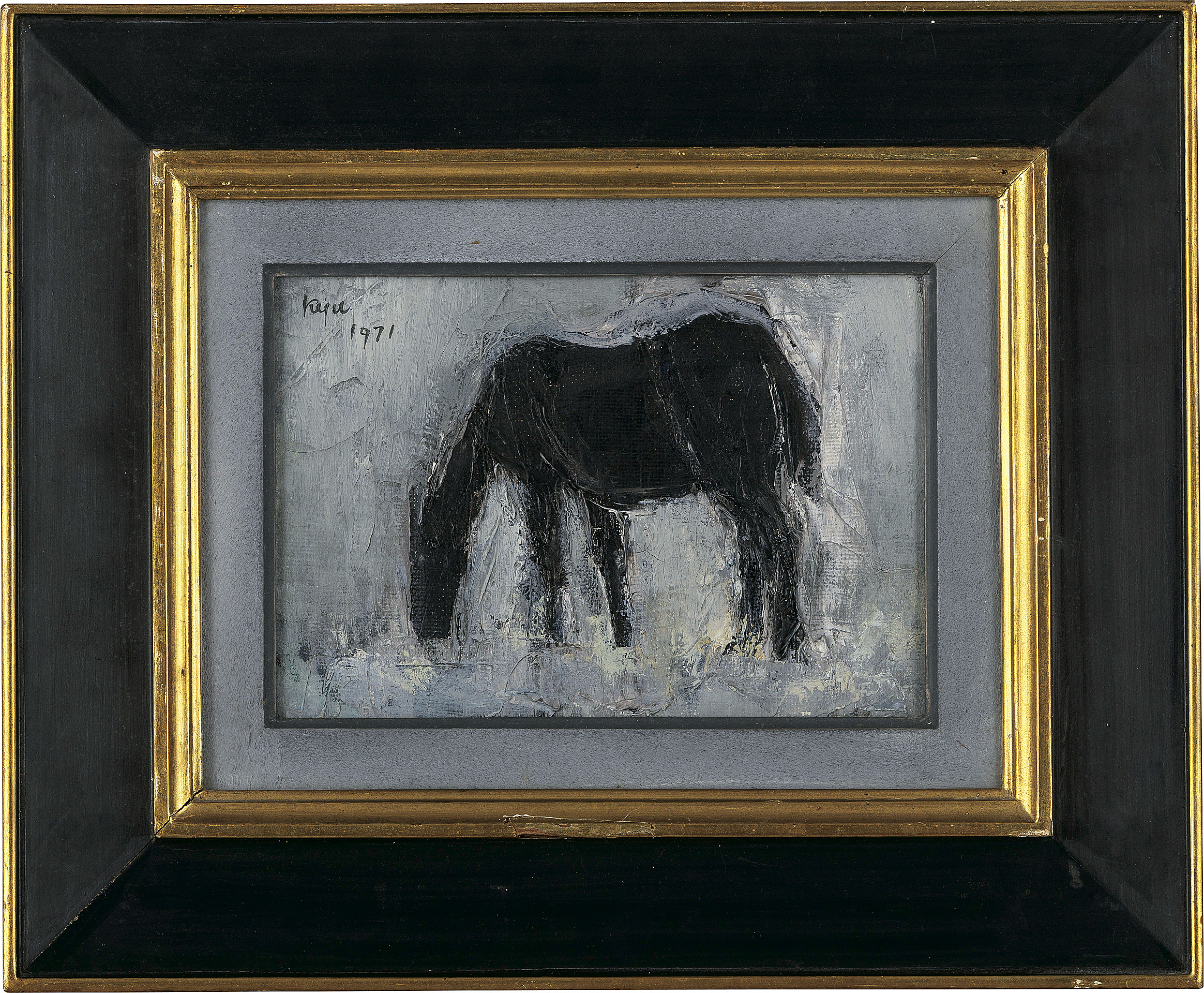 1971年 キャンバスに油彩 サムホール サイン有 キャンバス裏にもサイン、タイトル、年記 画面数ヶ所にヒビ、縁沿い数ヶ所に小さな剥落 額付
