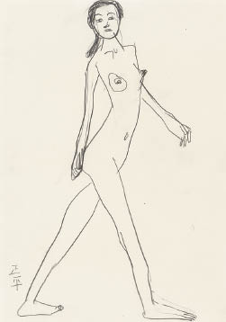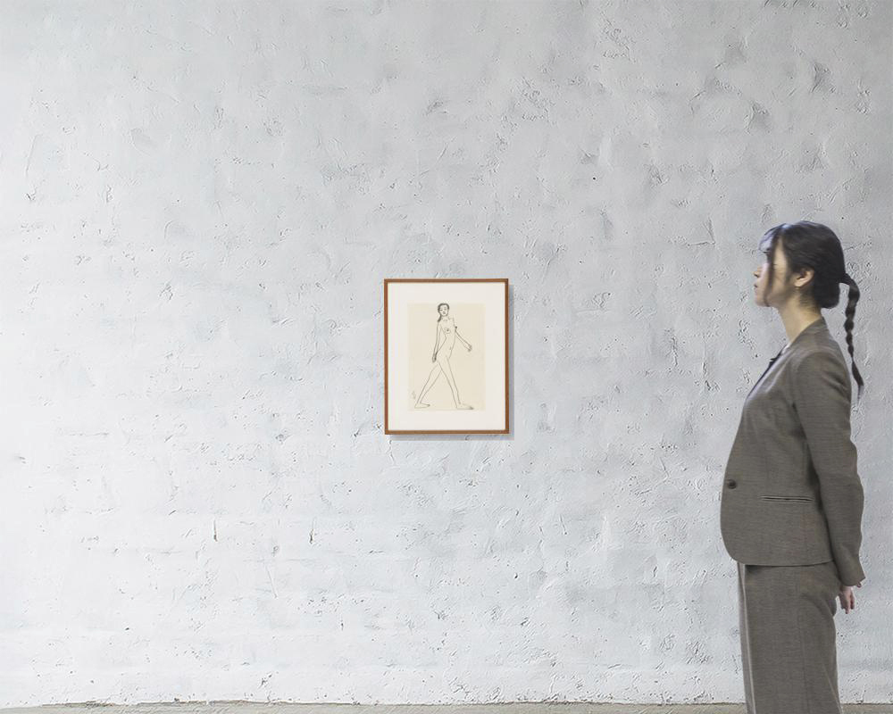 紙に鉛筆 33.4×25(紙)cm サイン有 スケッチブックに描かれた作品 画面全体に薄いヤケ、数ヶ所にシミ 額付