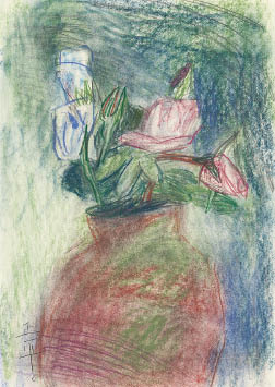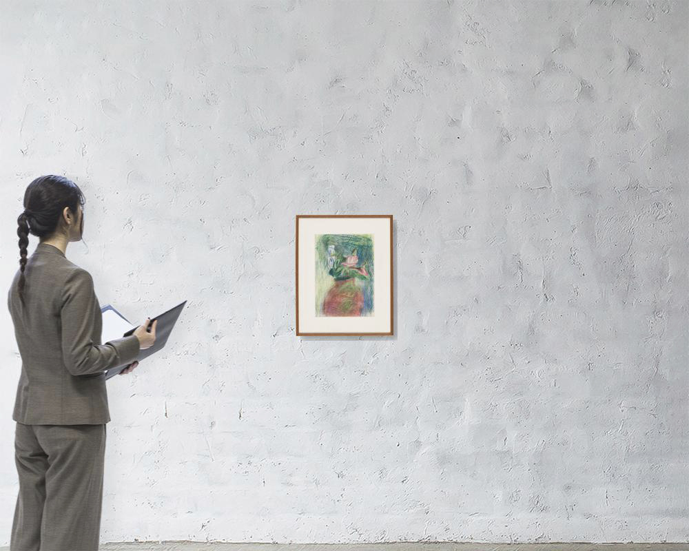 紙にパステル 33.2×24.2(紙)cm サイン有 スケッチブックに描かれた作品 画面全体に薄いヤケ 額付
