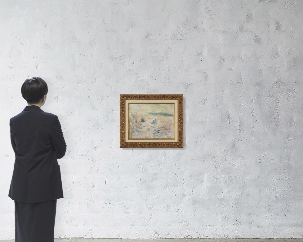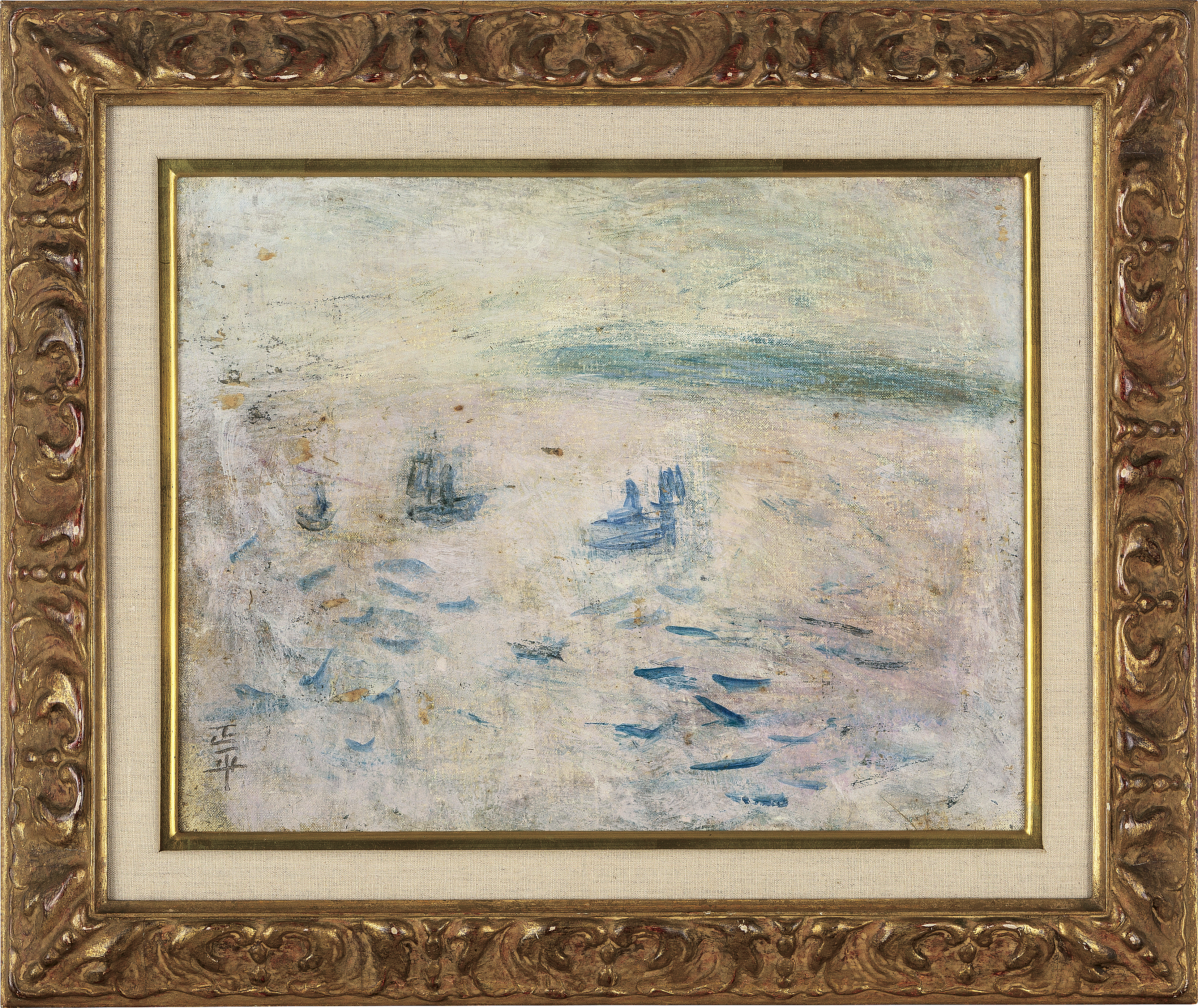 キャンバスに油彩 31.8×41cm(F6号) サイン有 キャンバス裏にもサイン、タイトル 「FORMES GALLERY」シール 画面数ヶ所にシミ、付着物 額付
