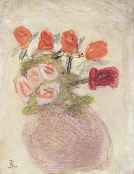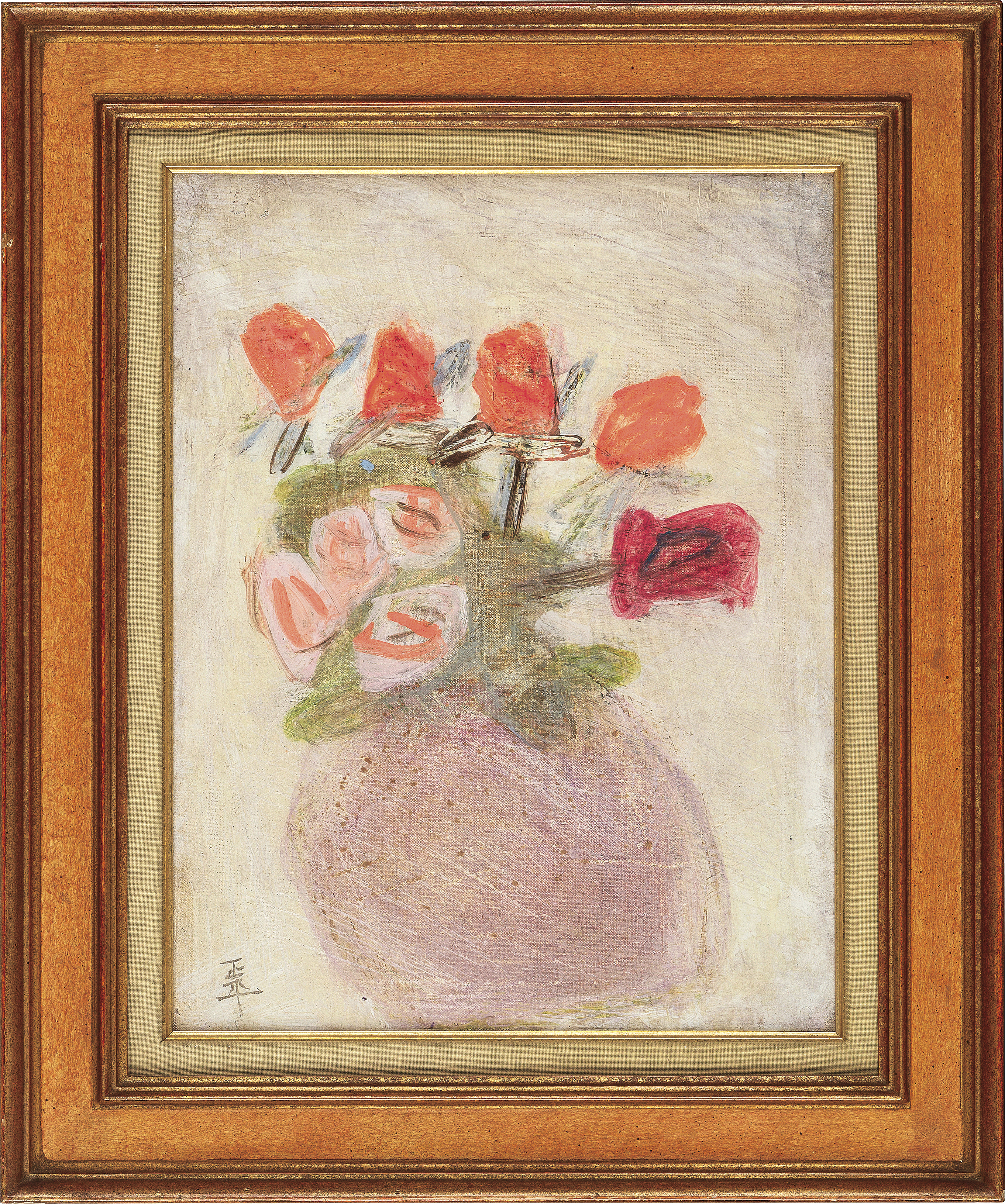 キャンバスに油彩 41×32cm(F6号) サイン有 画面数ヶ所にシミ、浅いヒビ 額付