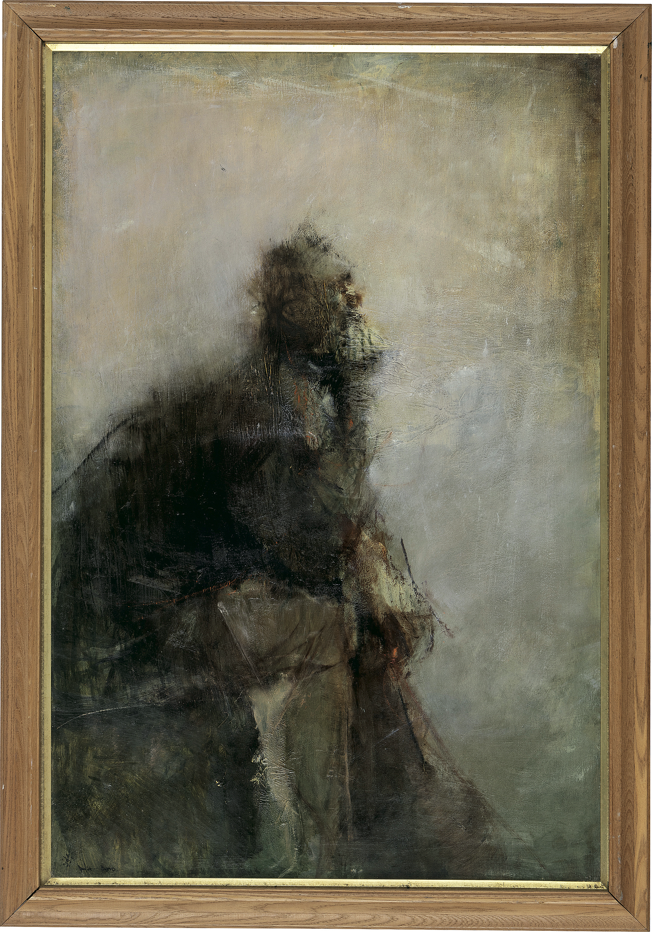キャンバスに油彩 M30号 サイン有 キャンバス裏にもサイン、タイトル 画面所々にヒビ、数ヶ所にシミ、剥落 額付