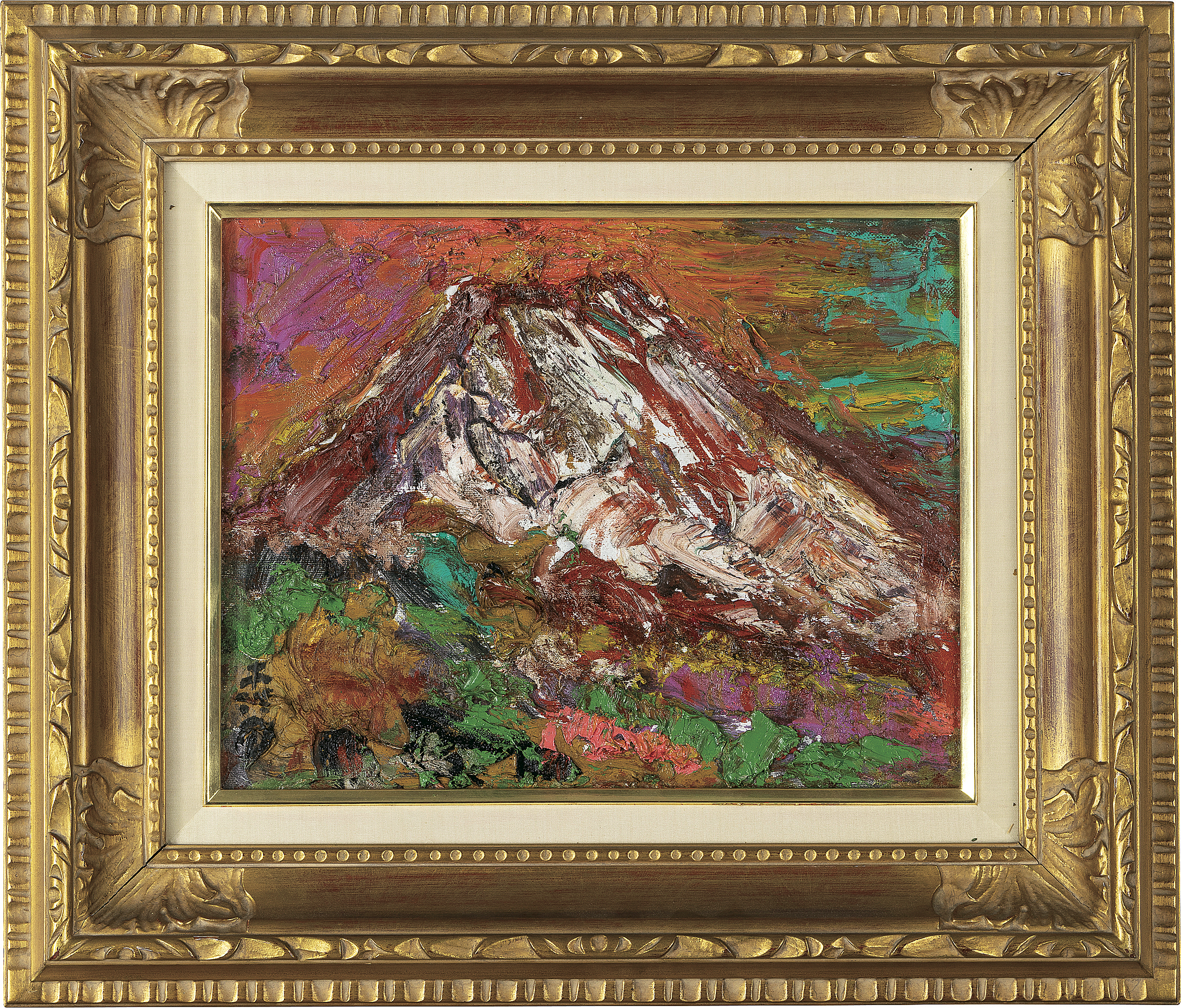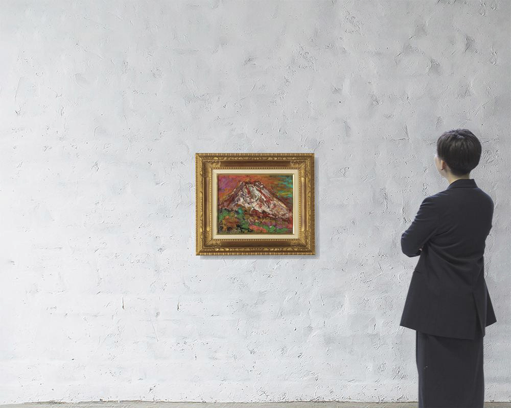 キャンバスに油彩 F6号 サイン有 キャンバス裏にもサイン、タイトル 画面数ヶ所にヒビ 額付