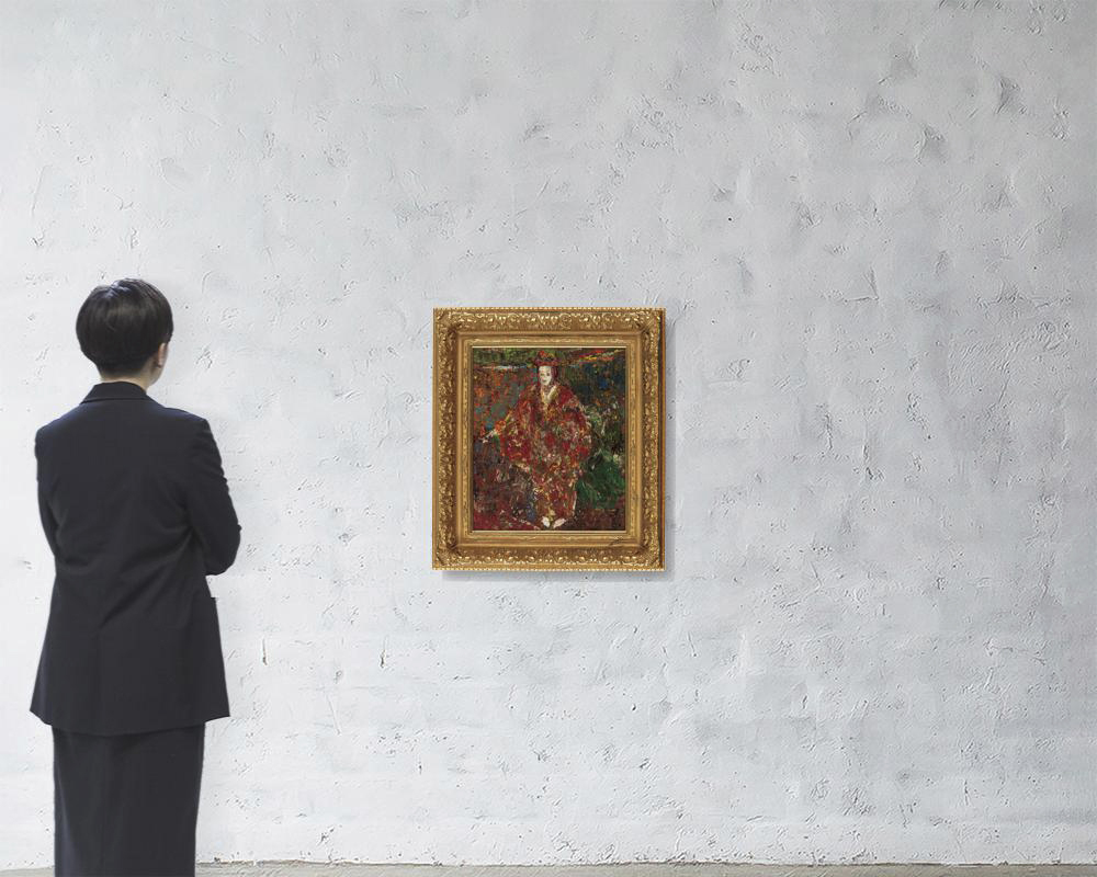 キャンバスに油彩 F8号 サイン有 キャンバス裏にもサイン、タイトル 画面数ヶ所にシミ、ヒビ 額付*