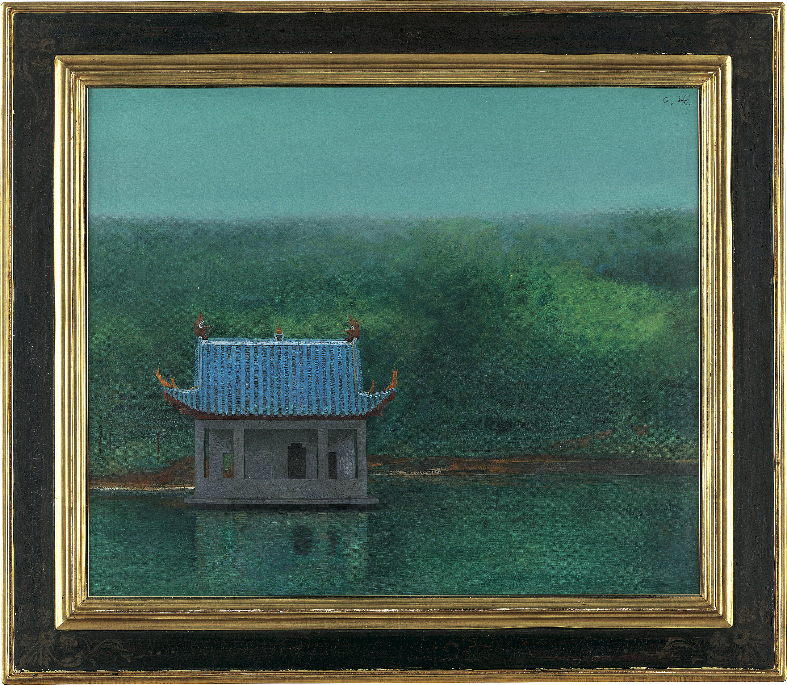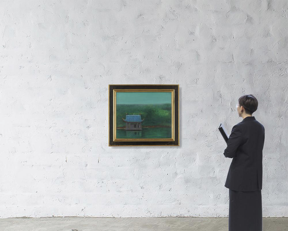 キャンバスに油彩 F20号 サイン有 キャンバス裏にもサイン、タイトル キャンバス裏木枠にもサイン 共シール 画面所々に絵具の縮み 額付