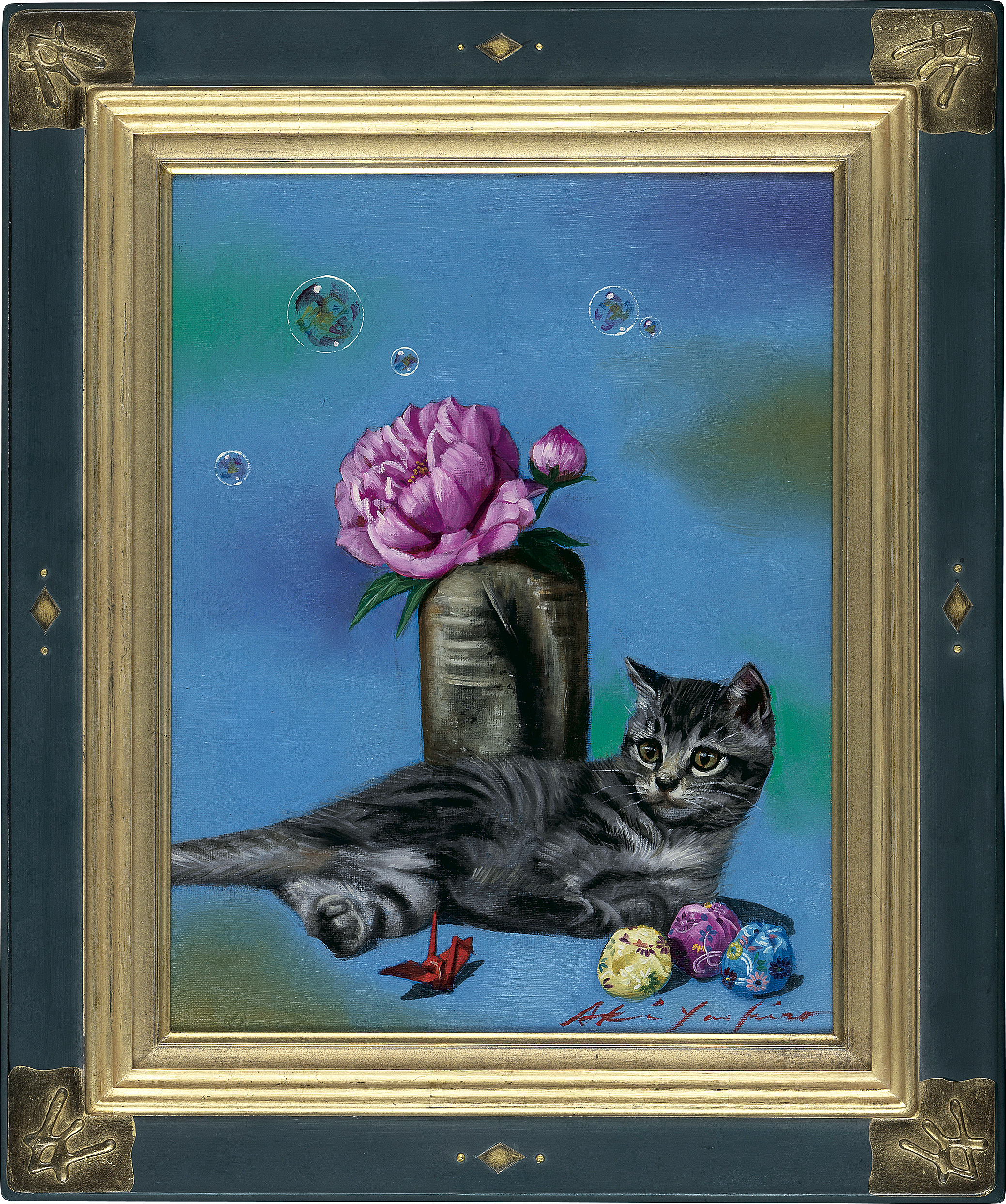 キャンバスに油彩 F6号 サイン有 キャンバス裏にもサイン、タイトル 額付