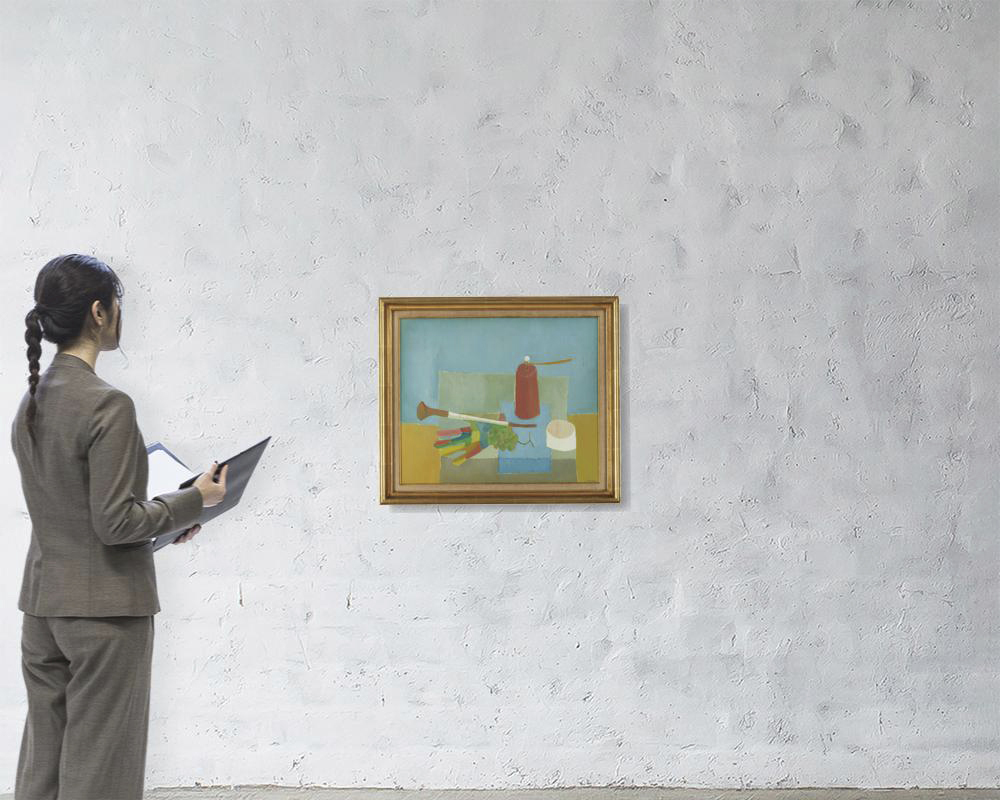 1973年 キャンバスに油彩 仏F10号 サイン有 キャンバス裏にもサイン、タイトル、年記 画面所々にヒビ、数ヶ所にシミ、わずかな絵具の浮き 額付*