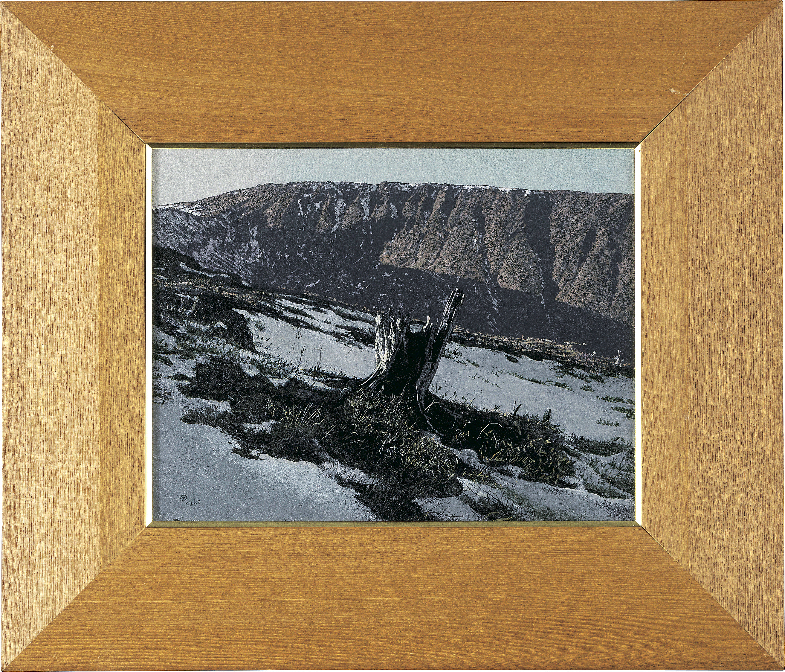 平成14年(2002年) パネルに貼付したキャンバスに油彩 F6号 サイン有 パネル裏にもサイン、タイトル、年記 額付