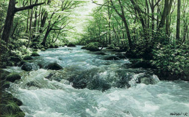 キャンバスに油彩 32.3×51.8(額窓)cm サイン有 キャンバス裏木枠にもサイン、タイトル 額付*