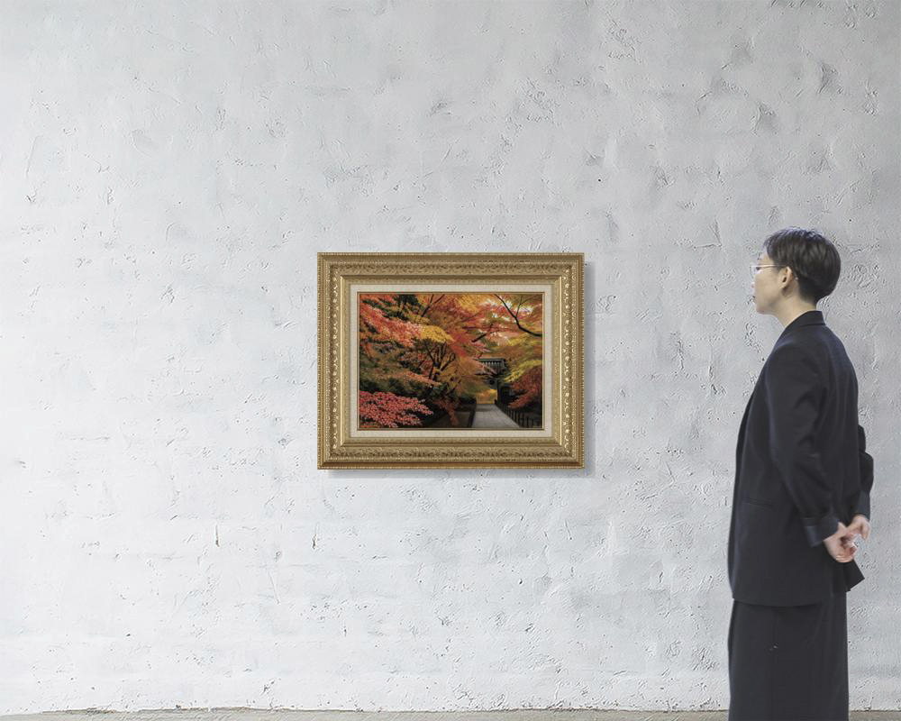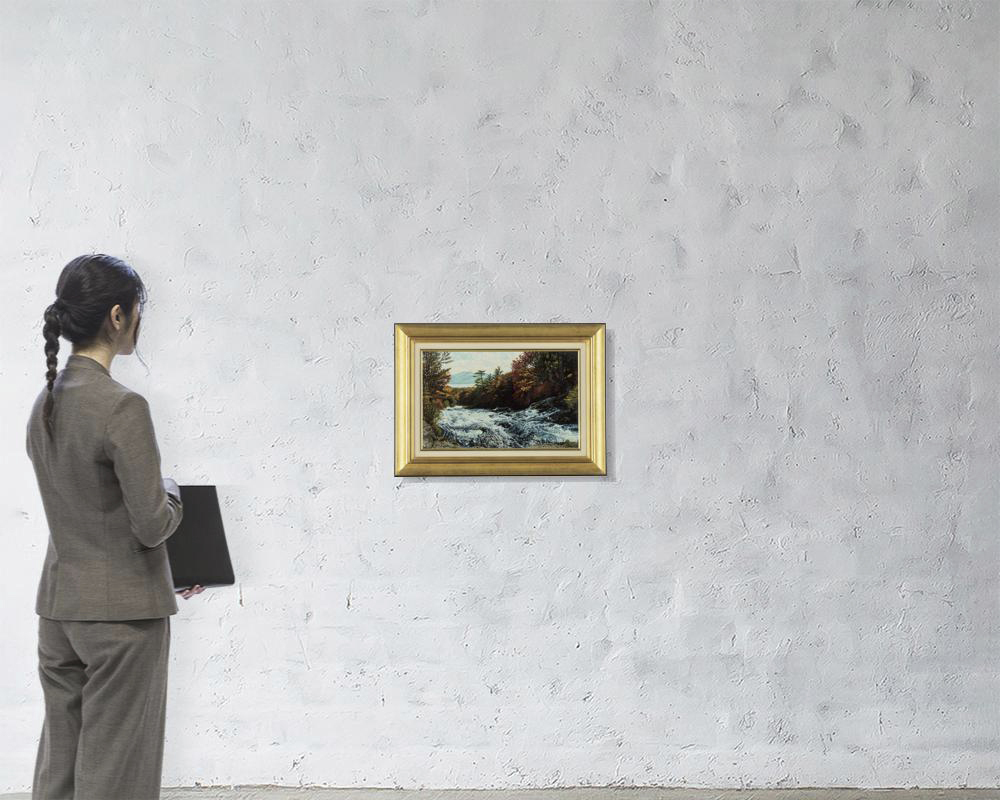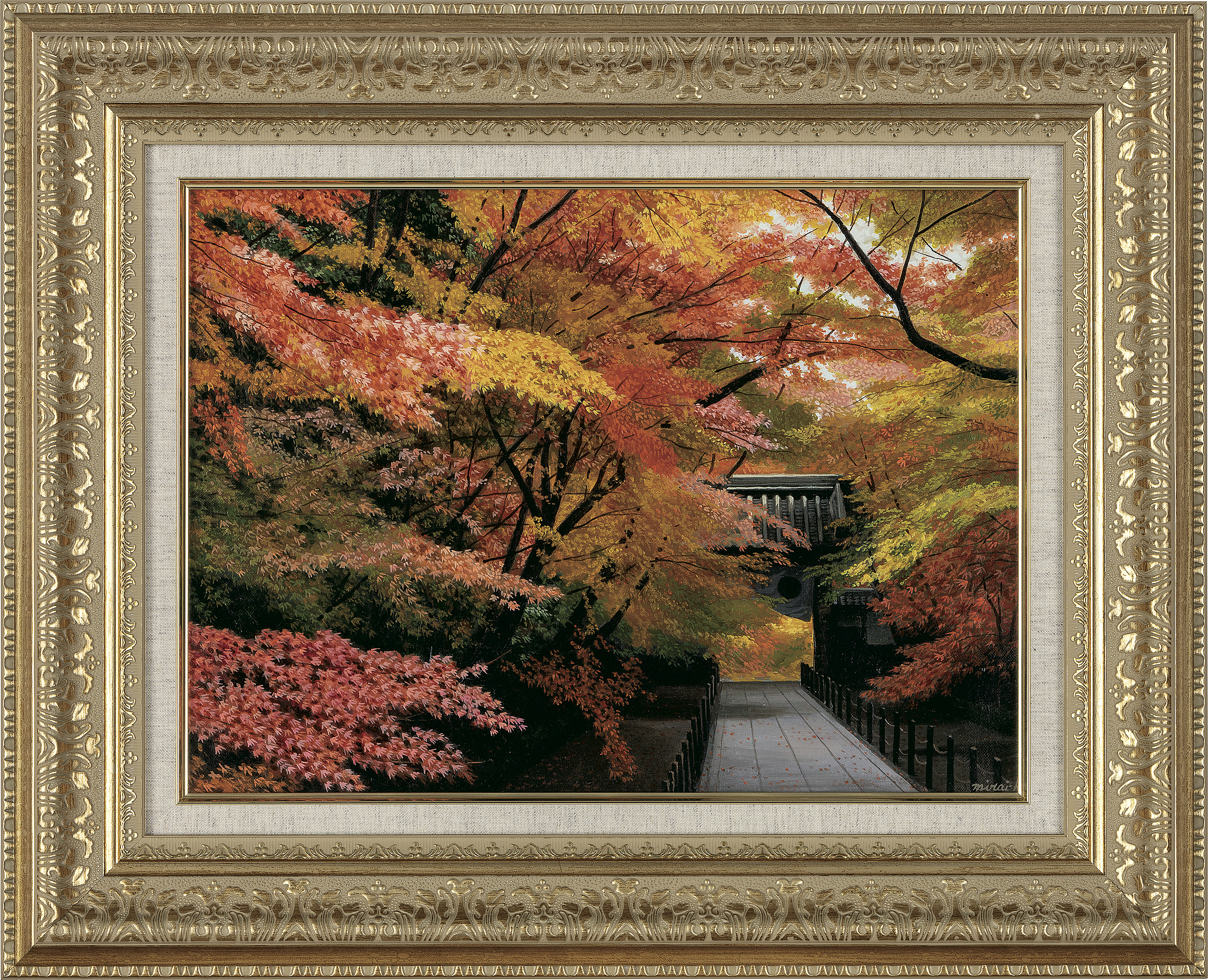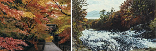 キャンバスに油彩 P8号 サイン有 キャンバス裏木枠にもサイン、タイトル もう1点は【山河光彩(日光・竜頭の滝)】(M10号 他は表題と同データ) 2点共額付