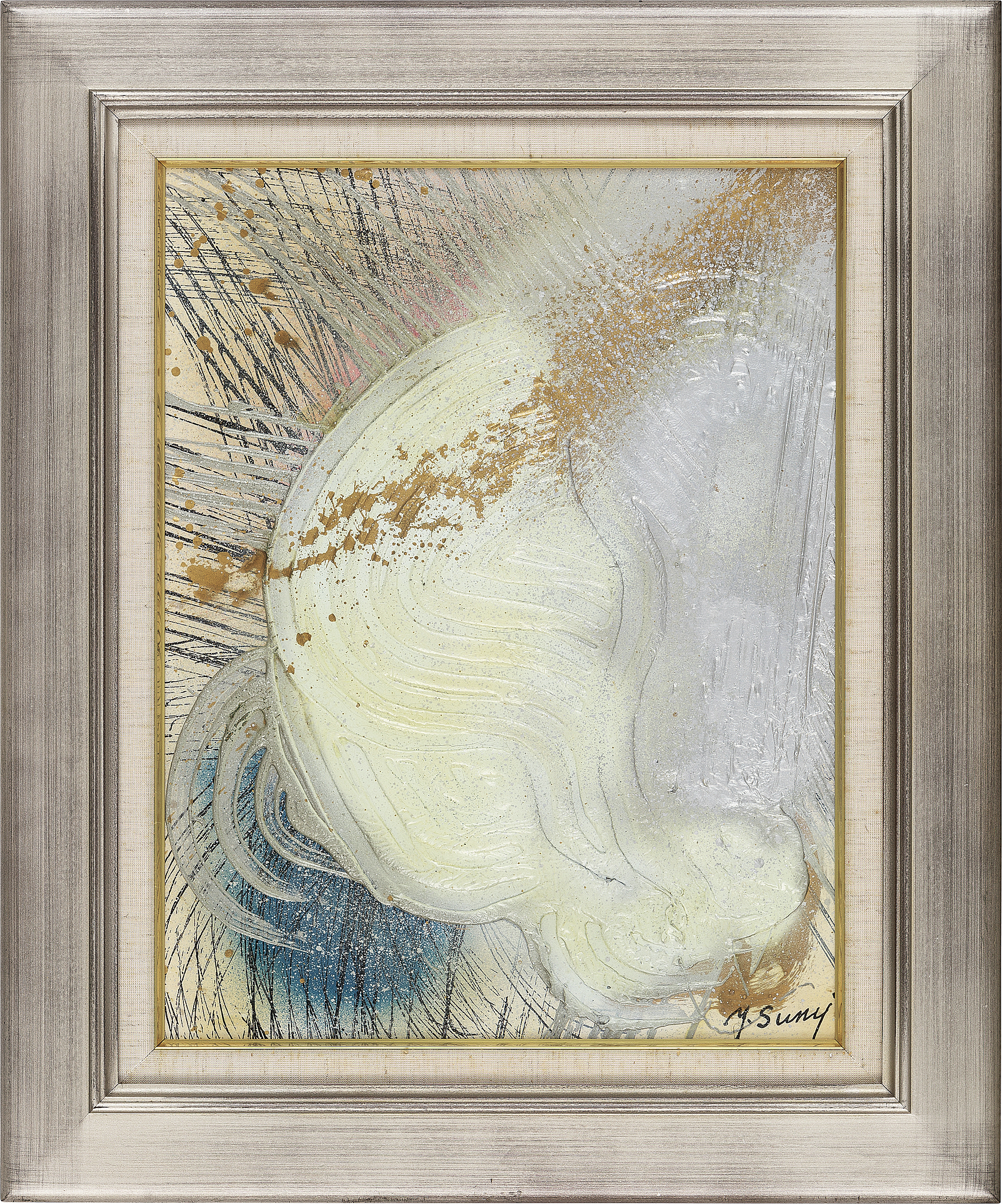 1971年 キャンバスに貼付した板に貼付した紙に油彩 41.2×32cm サイン有 キャンバス裏にもサイン、タイトル、年記 画面全体に薄いヤケ 額付