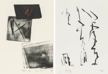 リトグラフに手彩 30.1×21.6cm サイン有 ed.55 シート全体に薄いヤケ マージン及び裏面数ヶ所に点状のシミ もう1点は【IROHA】(1999年 リトグラフ 28.6×18.4cm サインと印有 ed.50 シート全体に薄いヤケ マージン隅2ヶ所にシミ) 2点共額付