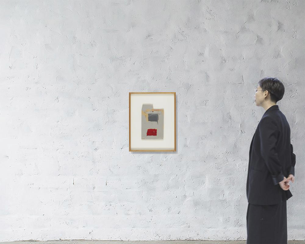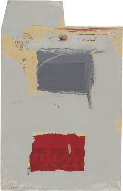 1991年 封筒に塗料 31×19.7(封筒)cm サイン有 裏面にもサイン、タイトル 作品は裏面数ヶ所を台紙に貼付 画面全体に薄いヤケ、数ヶ所にシミ、シワ 額付
