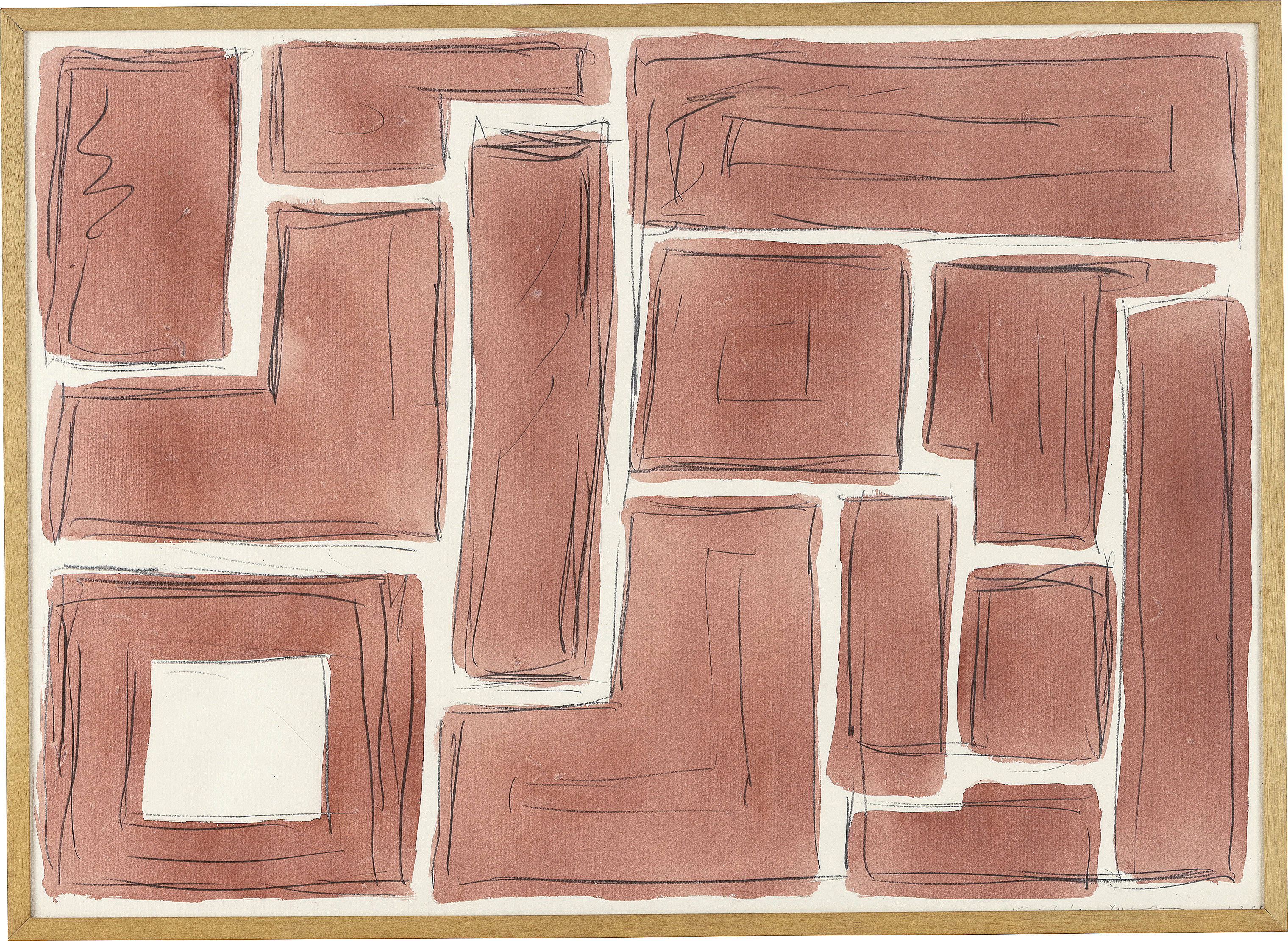 1985年 紙に水彩・鉛筆 78.8×109.3(紙)cm サイン有 画面全体に薄いヤケ 額付