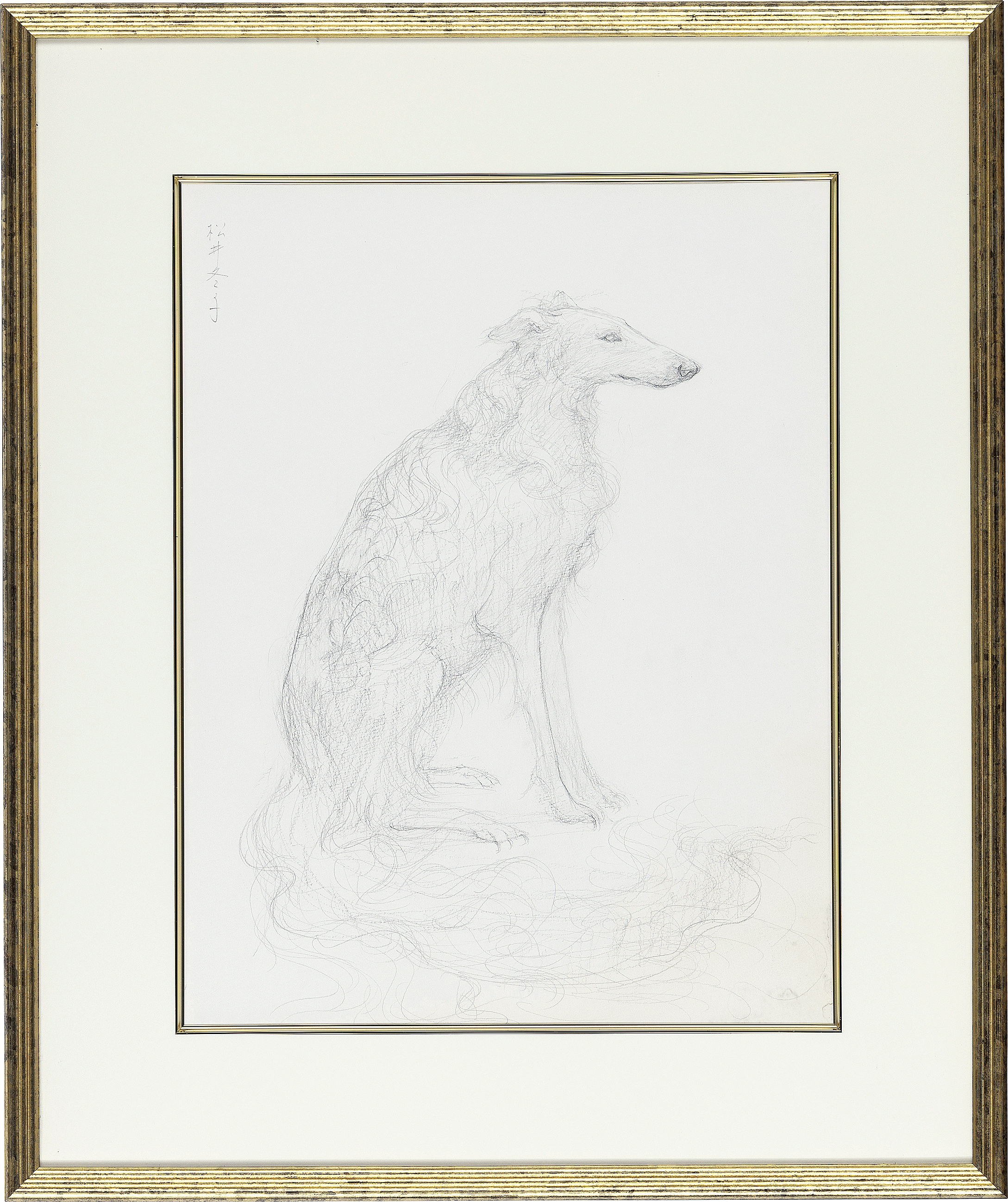 紙に鉛筆 41.8×32.5(紙)cm サイン有 紙による裏打ち 画面数ヶ所に薄いヤケ、シミ、ヤブレ、縁沿い数ヶ所に紙の欠損 額付