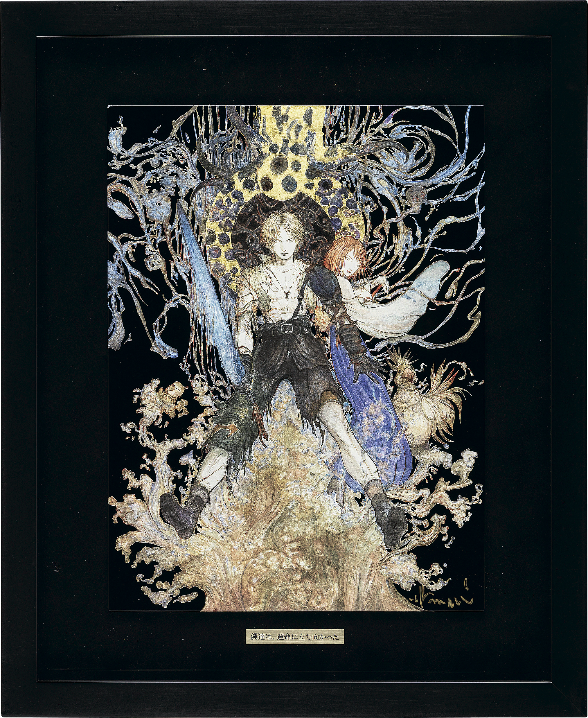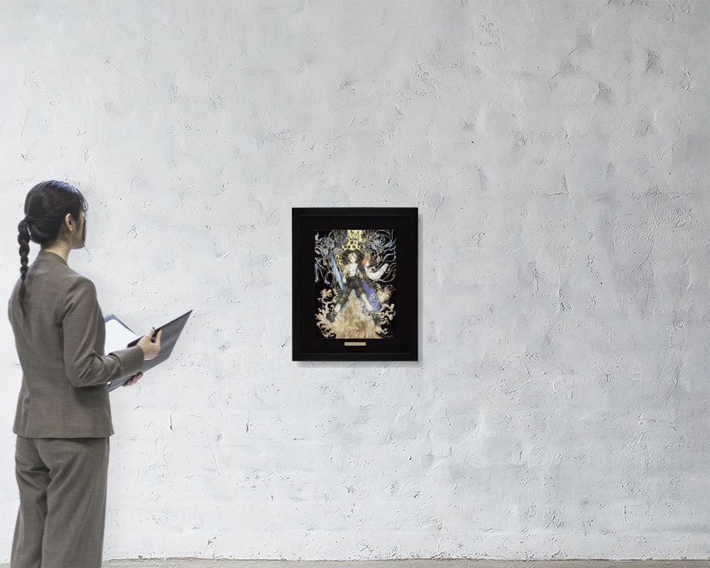 ミックストメディア版画 41×30.5cm サイン有 額付*