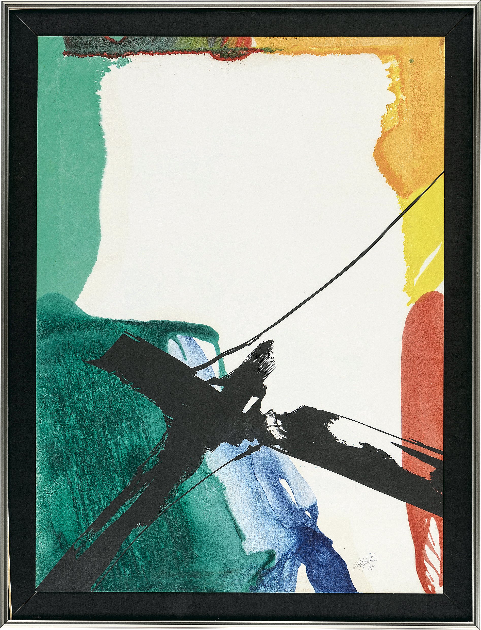 1980年 凸版に手彩 130×94.8(シート)cm サイン有 版面全体に薄いヤケ、数ヶ所にシミ、縁沿い1ヶ所にシワ 額付*