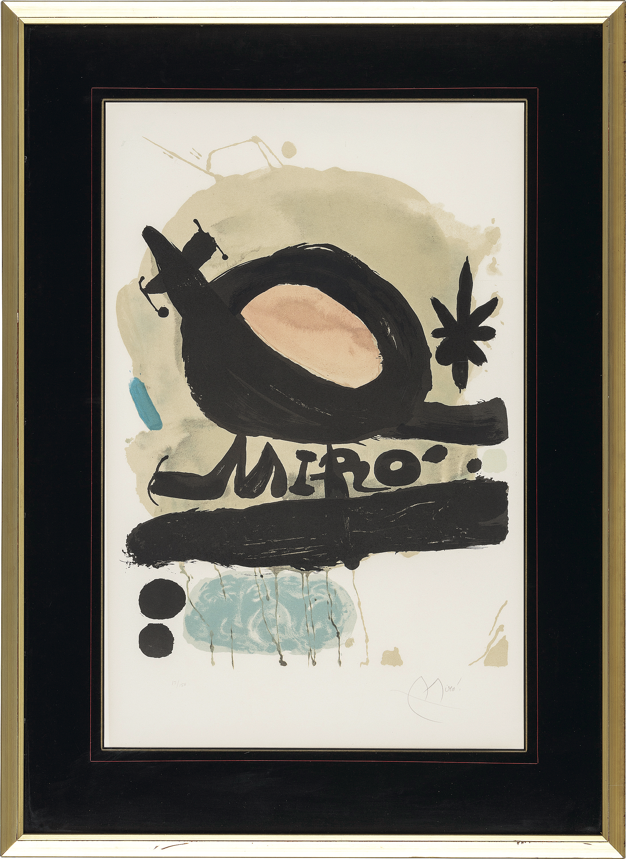 M.438 1967年 リトグラフ 65.5×49cm サイン有 ed.150 文字入れ前の版 版面に退色 版面及びマージンに薄いヤケ マージン数ヶ所にシミ、シワ 額付*