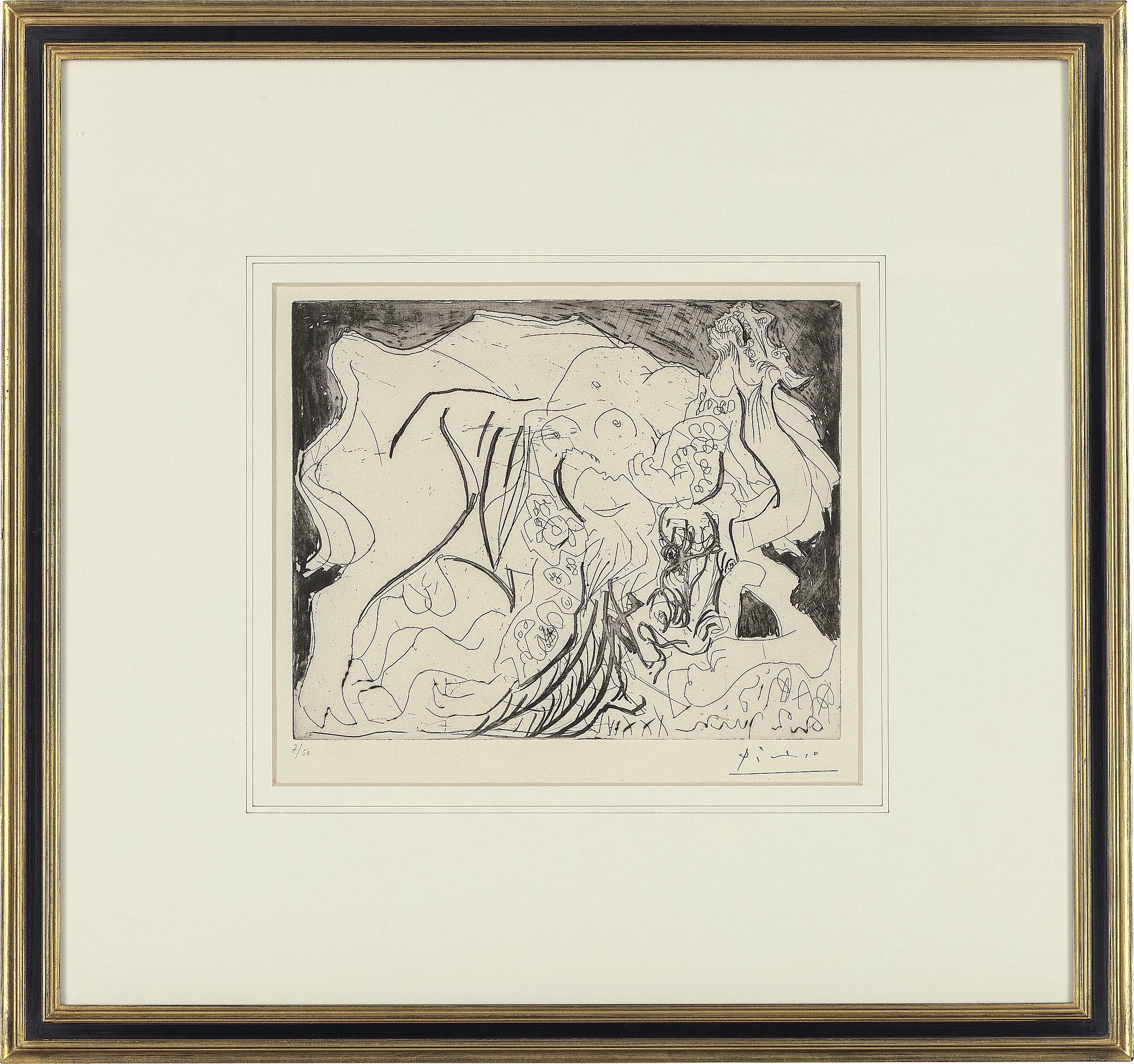 BLOCH 281/GEISER 429 1934年 エッチング・アクアチント 23.8×29.9cm スタンプサイン ed.50 シートサイズ 40.2×51.2cm シート全体にヤケ、数ヶ所に点状のシミ 裏面縁沿い2ヶ所にテープ貼付 額付