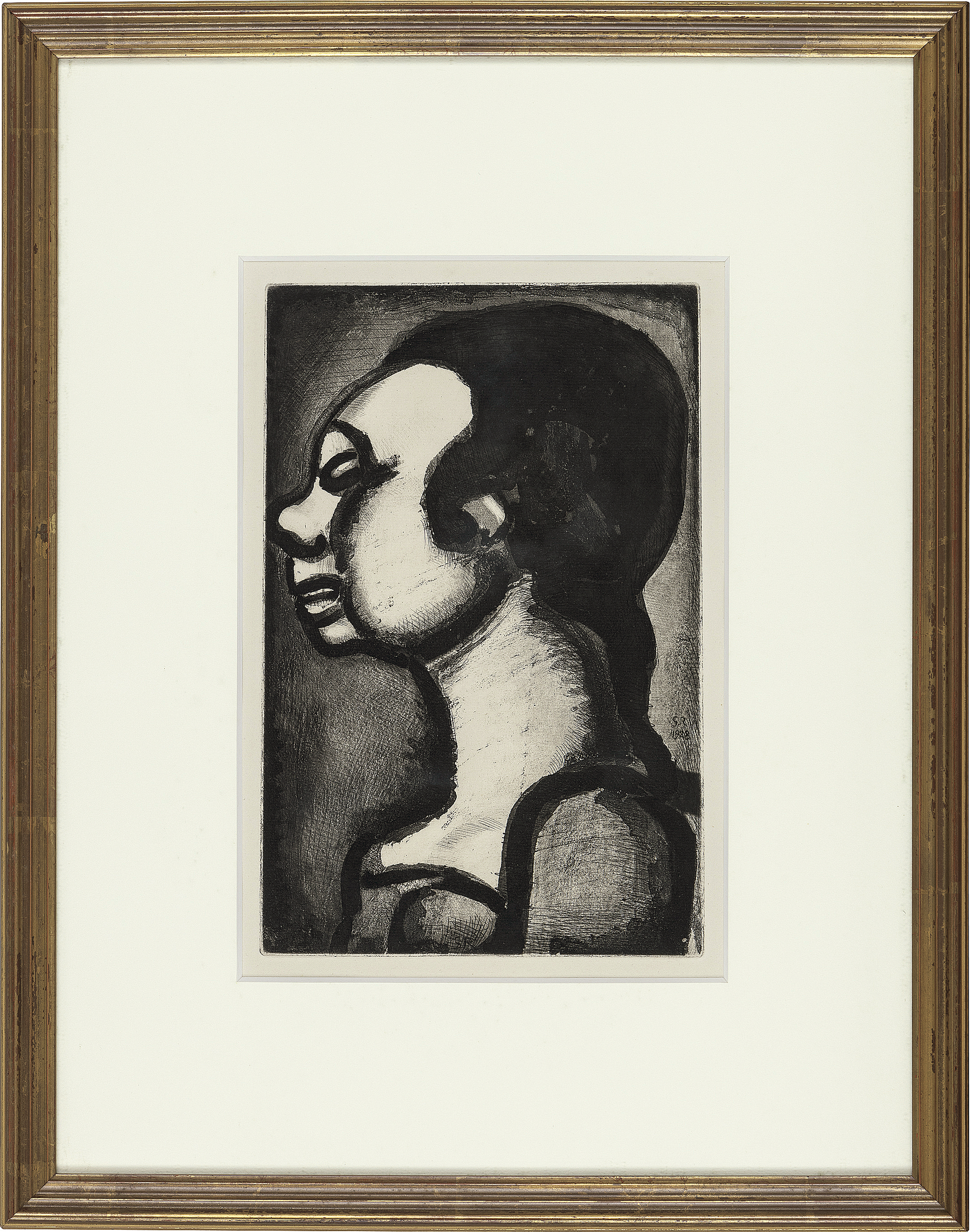 銅版画22点が収められた挿画本 CHAPON & ROUAULT 8~29 1932年 45×34(本)cm 総ed.335部のうちレギュラー版250部より巻頭にed.の印字 ヴォラール刊 作品全体にヤケ、所々にシミ、数ヶ所にシワ ケース付 22点額付*