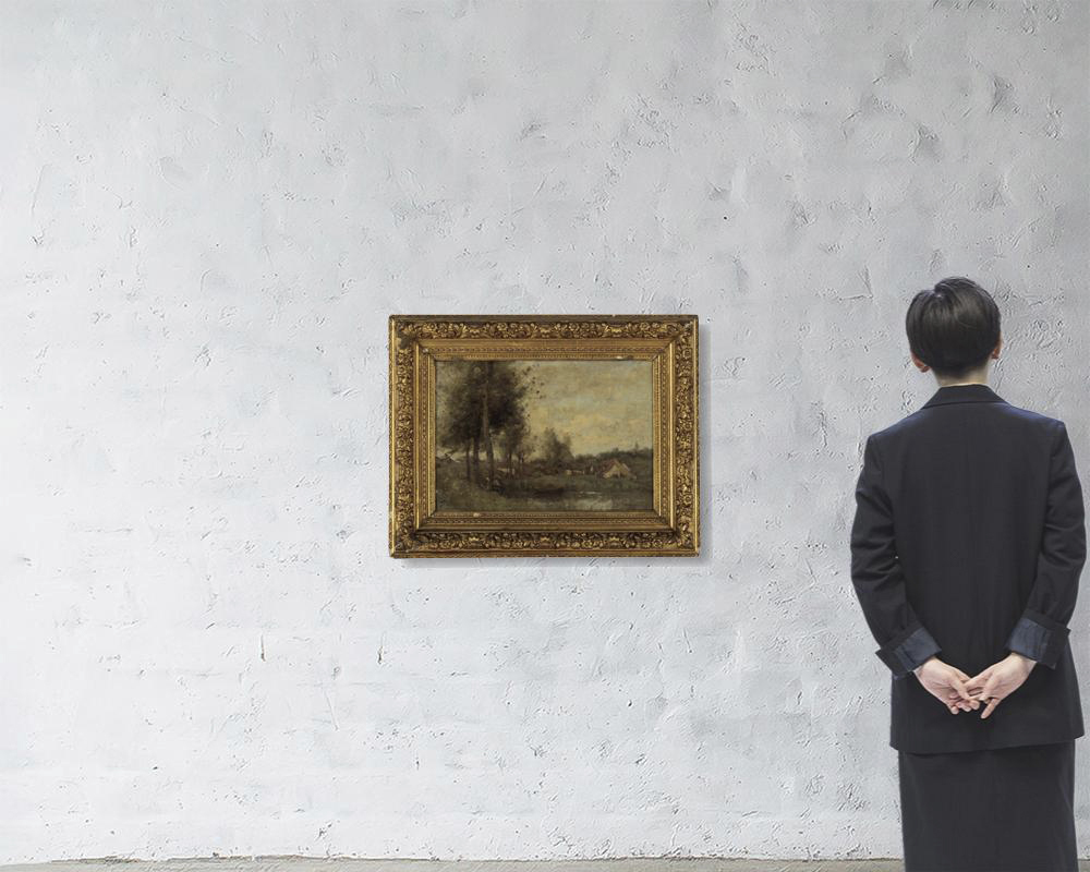 キャンバスに油彩 仏P10号 サイン有 キャンバスによる裏打ち 画面数ヶ所にヒビ、剥落、修復、縁沿い数ヶ所にコスレ 額付