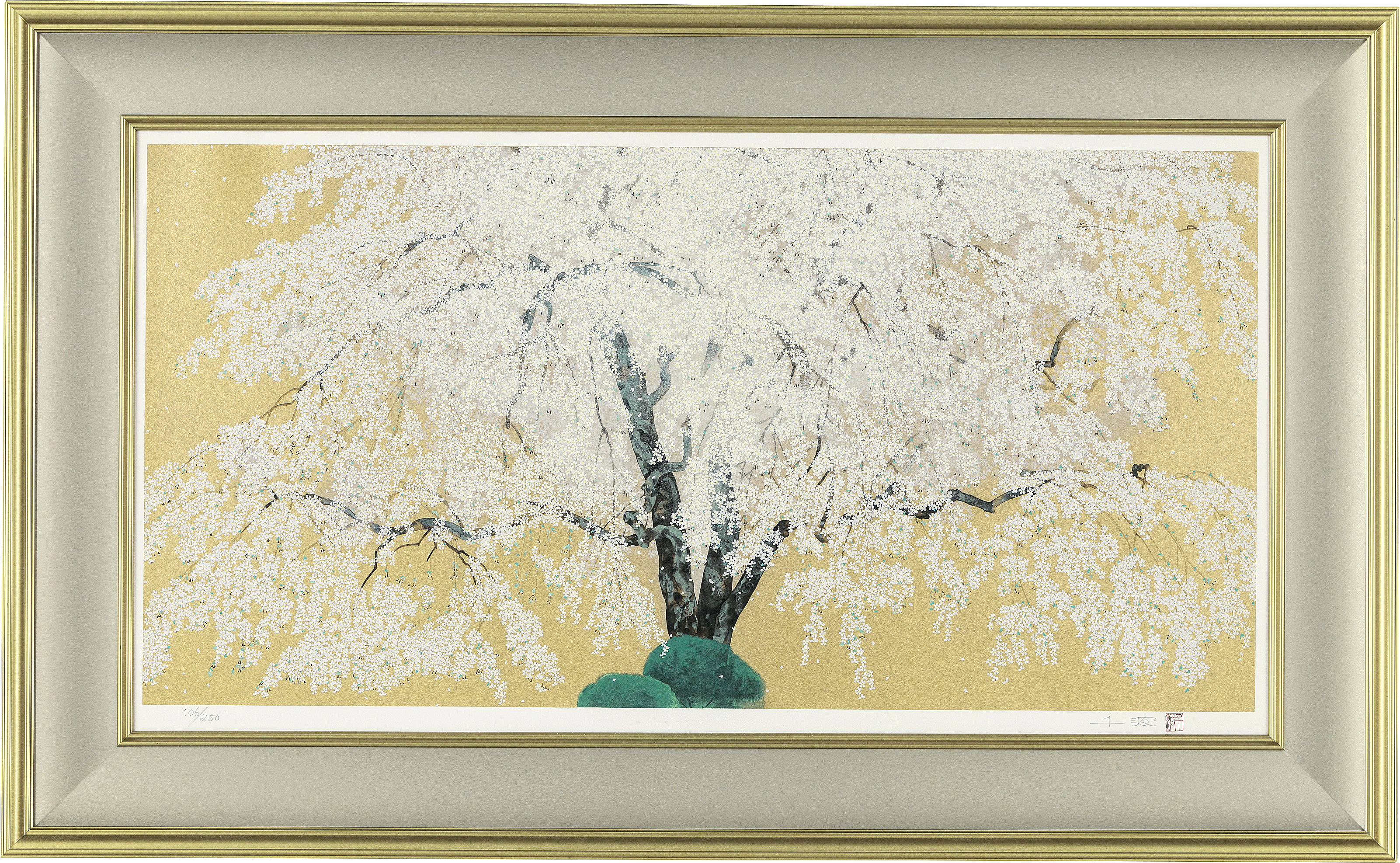 日経新聞社No.74 1996年 リトグラフ 45.5×90.5cm サインと印有 ed.250 大体良好 もう1点は【櫻花富士】(60.5×46.2cm ed.220 良好 他は表題と同データ) 2点共額付*