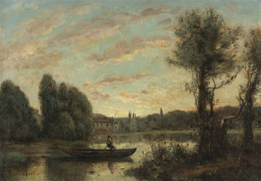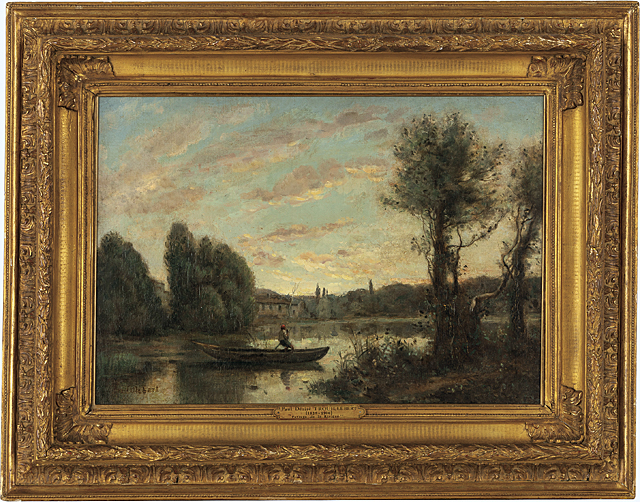 キャンバスに油彩 48.7×68.8cm サイン有 ボードによる裏打ち 画面所々に修復、数ヶ所に小さなシミ、ニスの変色、絵具の縮み 額付