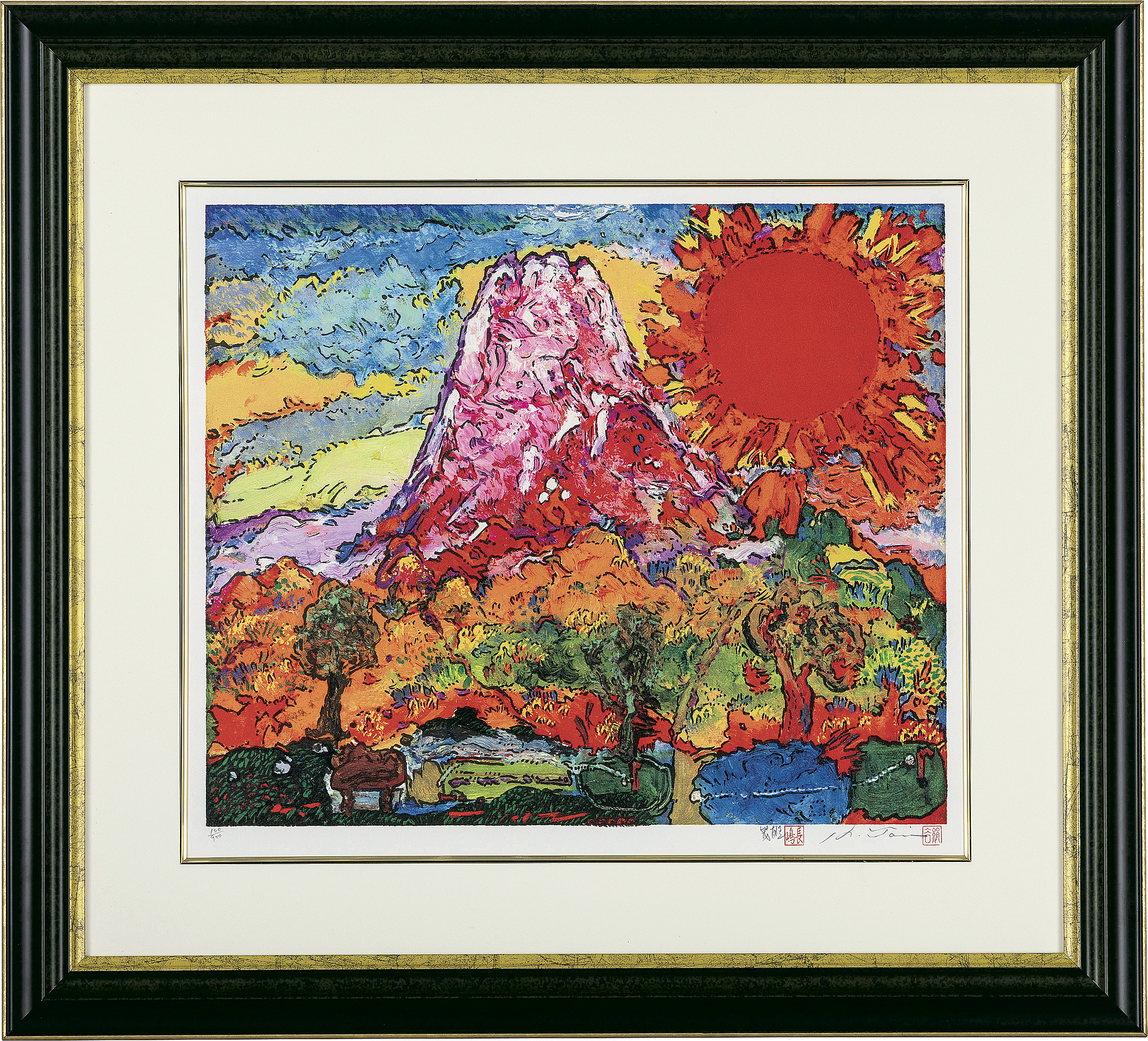 ミックストメディア版画 38×45.2cm 両名のサインと印 ed.900 シートサイズ 49.9×58.3cm マージン数ヶ所にわずかなシワ マージン及び裏面に薄いヤケ、数ヶ所にわずかなヨゴレ 裏面隅1ヶ所に紙の剥離 版面は大体良好 額付