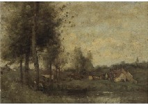 キャンバスに油彩 128×191.3cm 「The Santa Barbara Museum of Art」シール キャンバスによる裏打ち 画面全体に薄いヤケ、所々にシミ、絵具の縮み、数ヶ所にコスレ、ヒビ、小さな剥落、1ヶ所にヤブレ、縁沿い数ヶ所に修復 額付