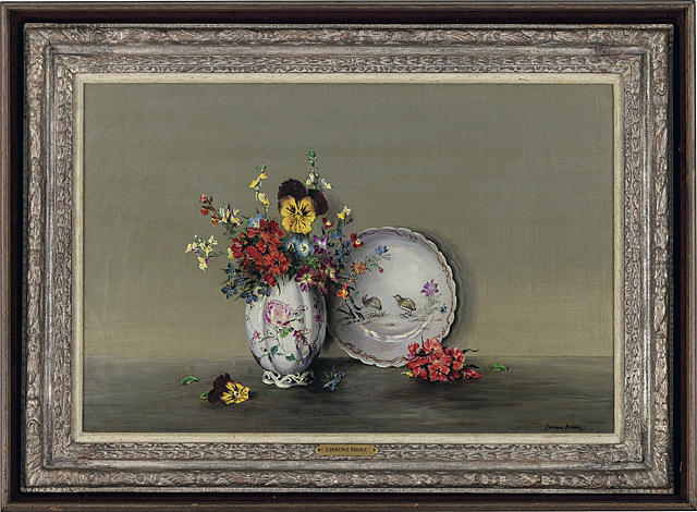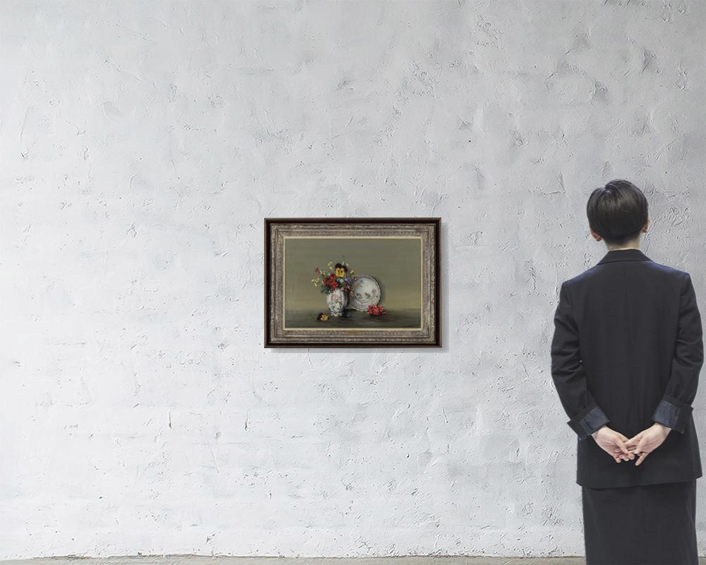 パネルに貼付したキャンバスに油彩 M10号 サイン有 パネル裏に貼付した紙にもサイン、ドローイング 画面所々にヒビ、縁沿い数ヶ所に修復 額付