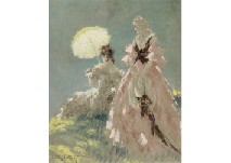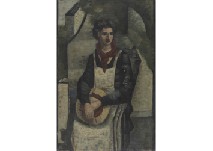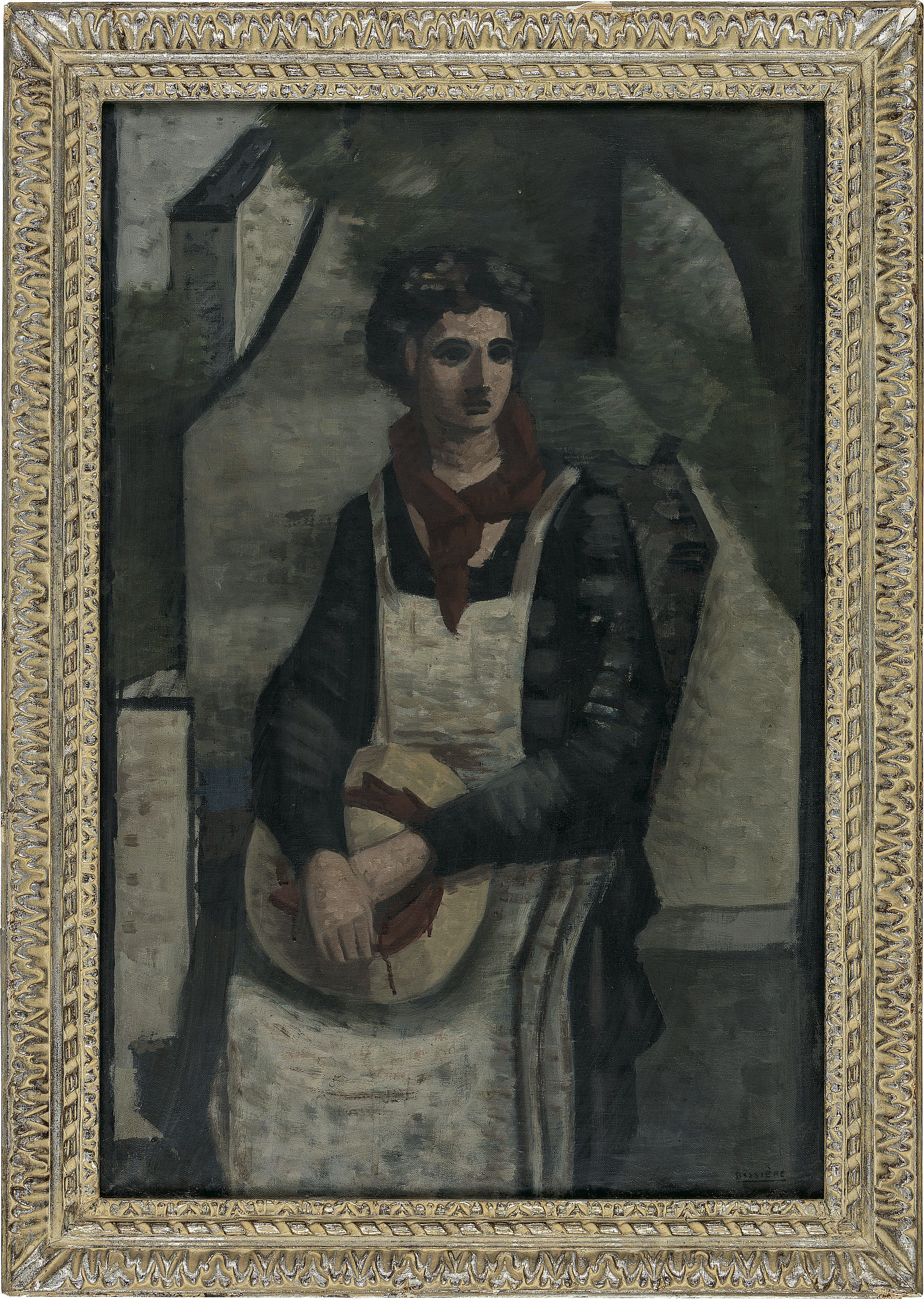 キャンバスに油彩 仏M25号 サイン有 画面数ヶ所に絵具の縮み、修復、2ヶ所に隆起、縁沿い数ヶ所に剥落、1ヶ所に穴 額付