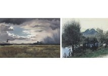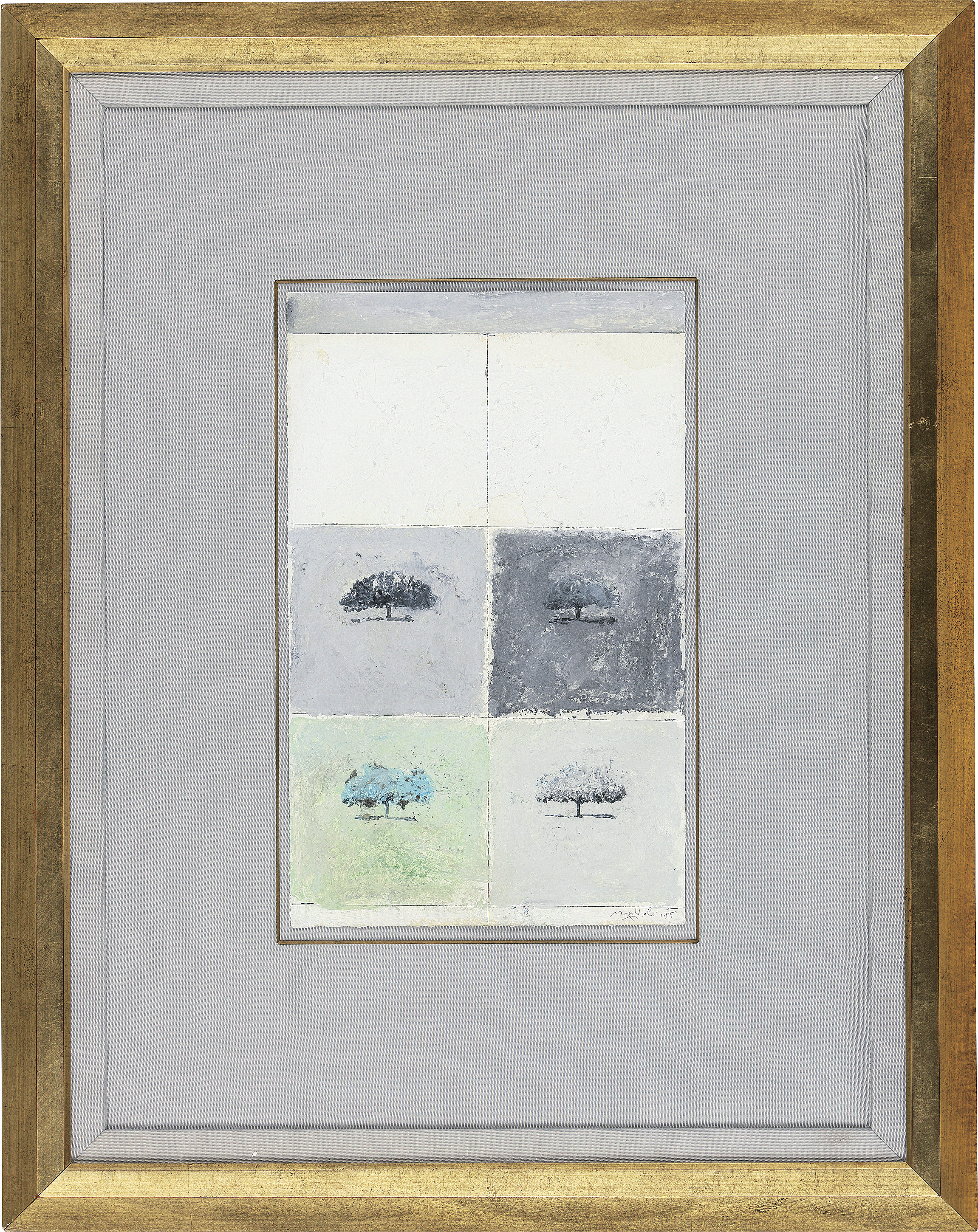 1985年 紙に油彩 49.7×30.5(紙)cm サイン有 画面所々にヒビ もう1点は【イルミネーション #8】(1985年 紙に油彩 49.6×31(紙)cm サイン有 画面数ヶ所にヒビ、剥落) 2点共額付*
