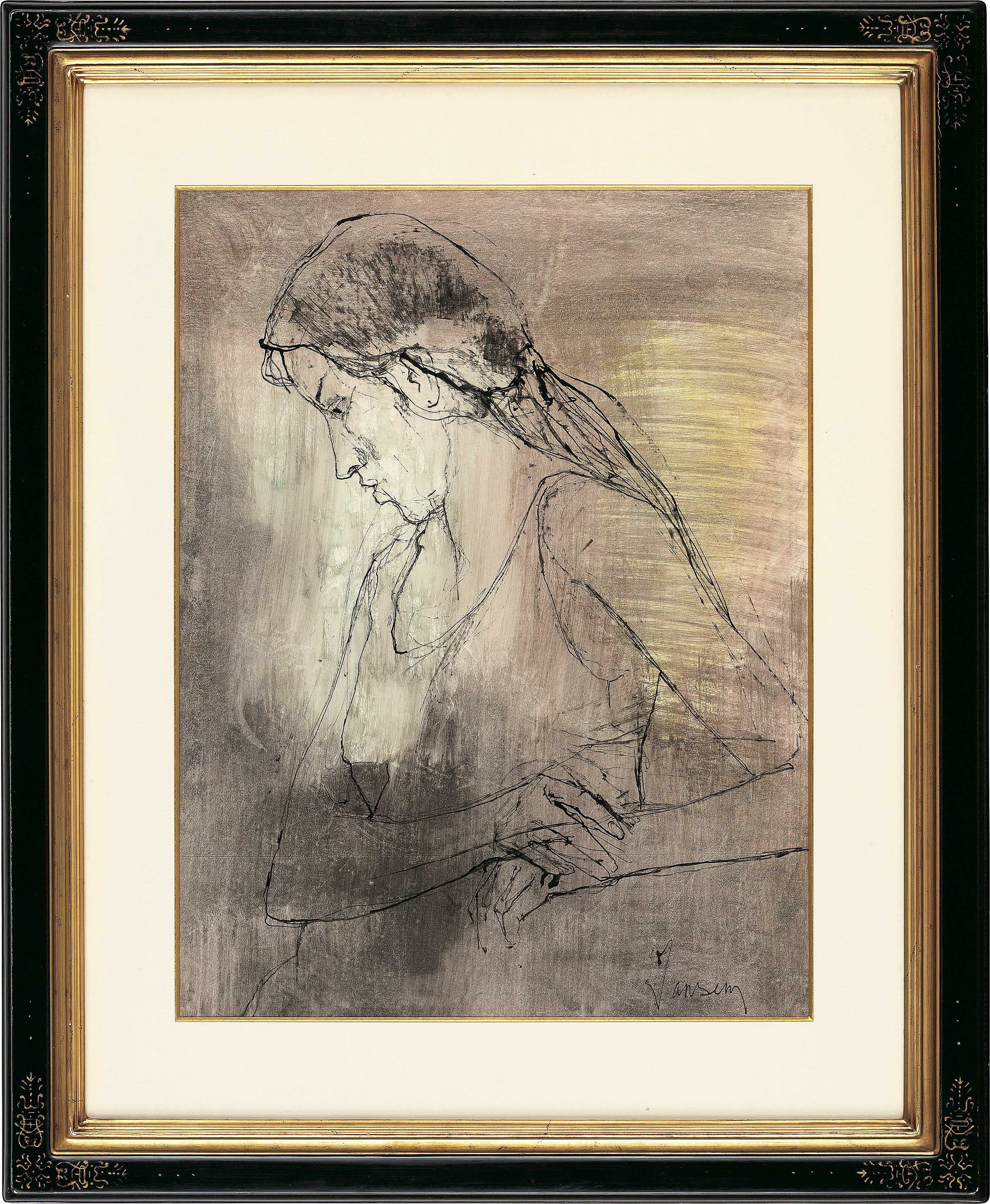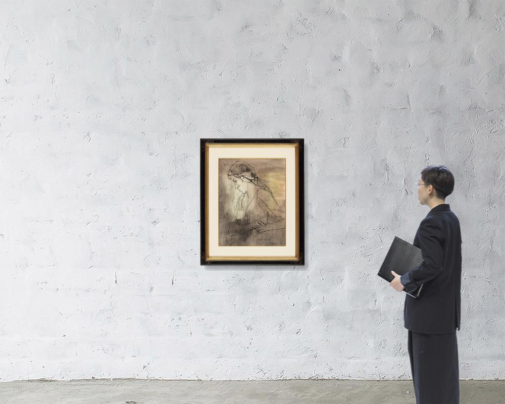 紙にインク・水彩 66.8×50.9(紙)cm サイン有 画面全体に薄いヤケ 額付