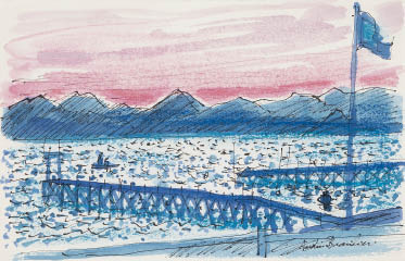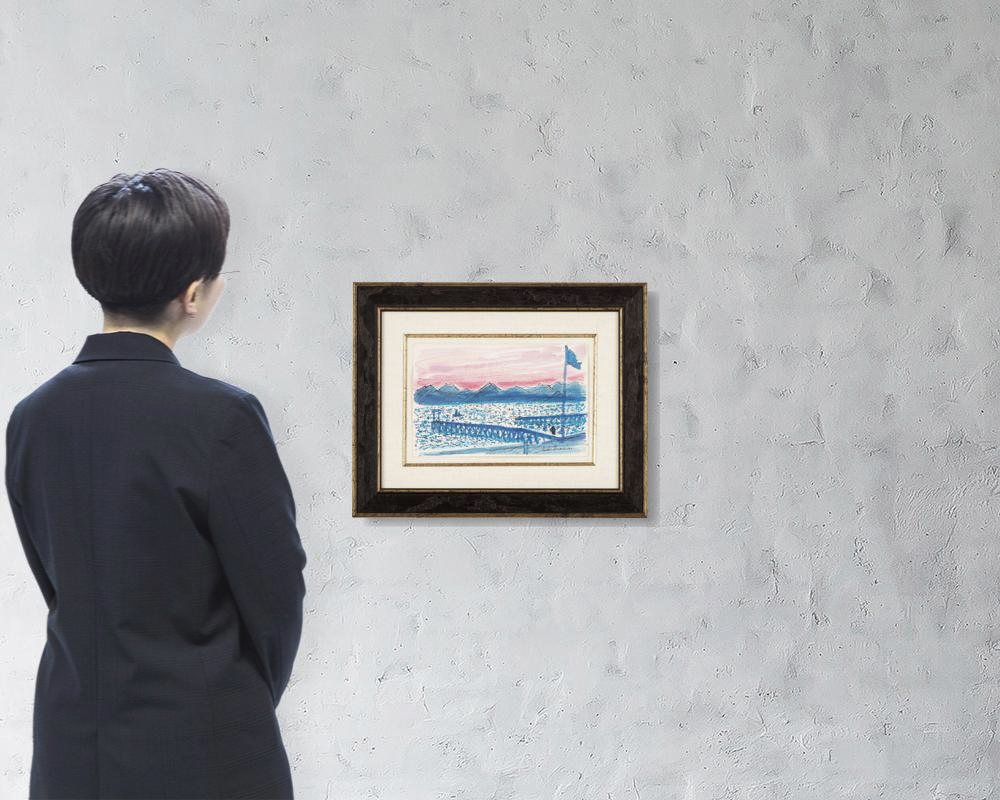 1981年 紙に水彩・ペン 17.2×26.5(紙)cm サイン有 画面全体に薄いヤケ、数ヶ所に小さなシミ、縁沿い1ヶ所にピンホール 額付*