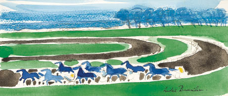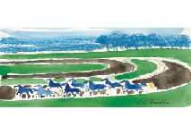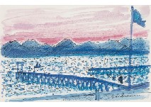 2001年 紙に水彩 14×31.6(紙)cm サイン有 作品は裏面を台紙に貼付 画面全体に薄いヤケ 額付