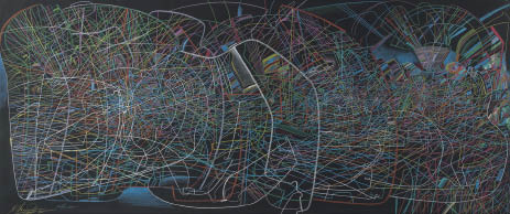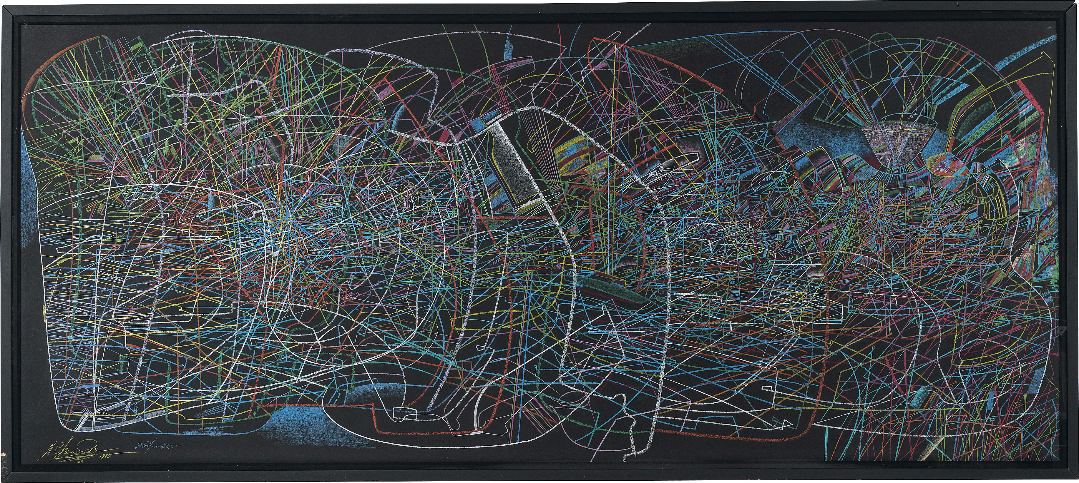 1985年 紙にパステル・色鉛筆 105.6×245(紙)cm サイン有 作品は裏面数ヶ所を台紙に貼付 画面全体にわずかな波打ち、縁沿い数ヶ所にシワ、2ヶ所に小さなシミ 額付