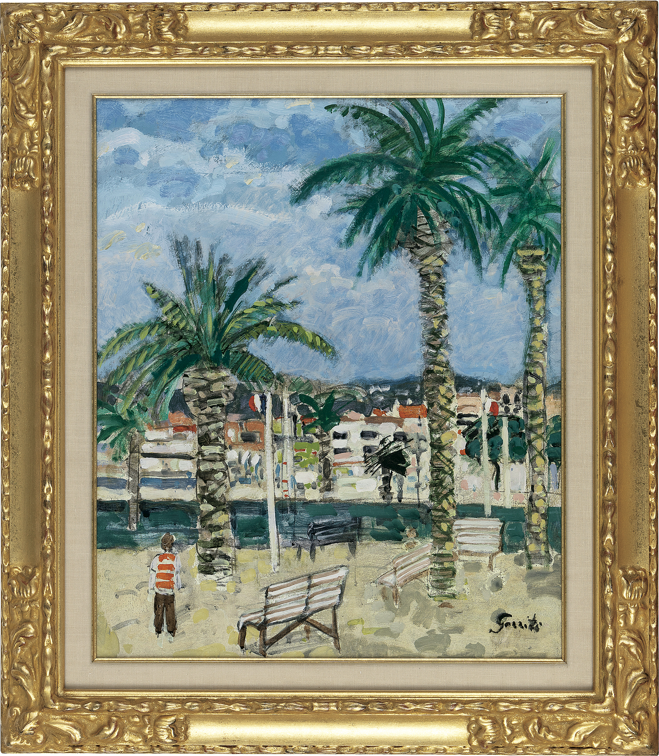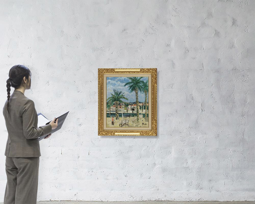 キャンバスに油彩 仏F10号 サイン有 キャンバス裏にもサイン、タイトル 「日動画廊」シール 額付