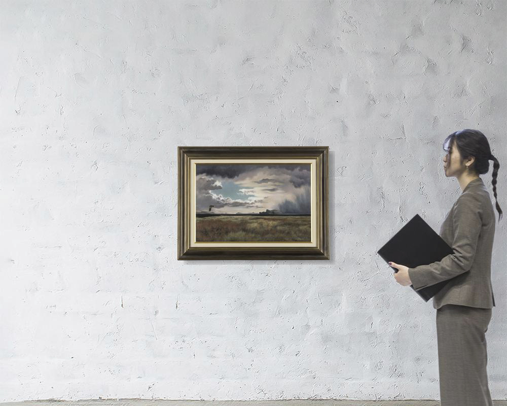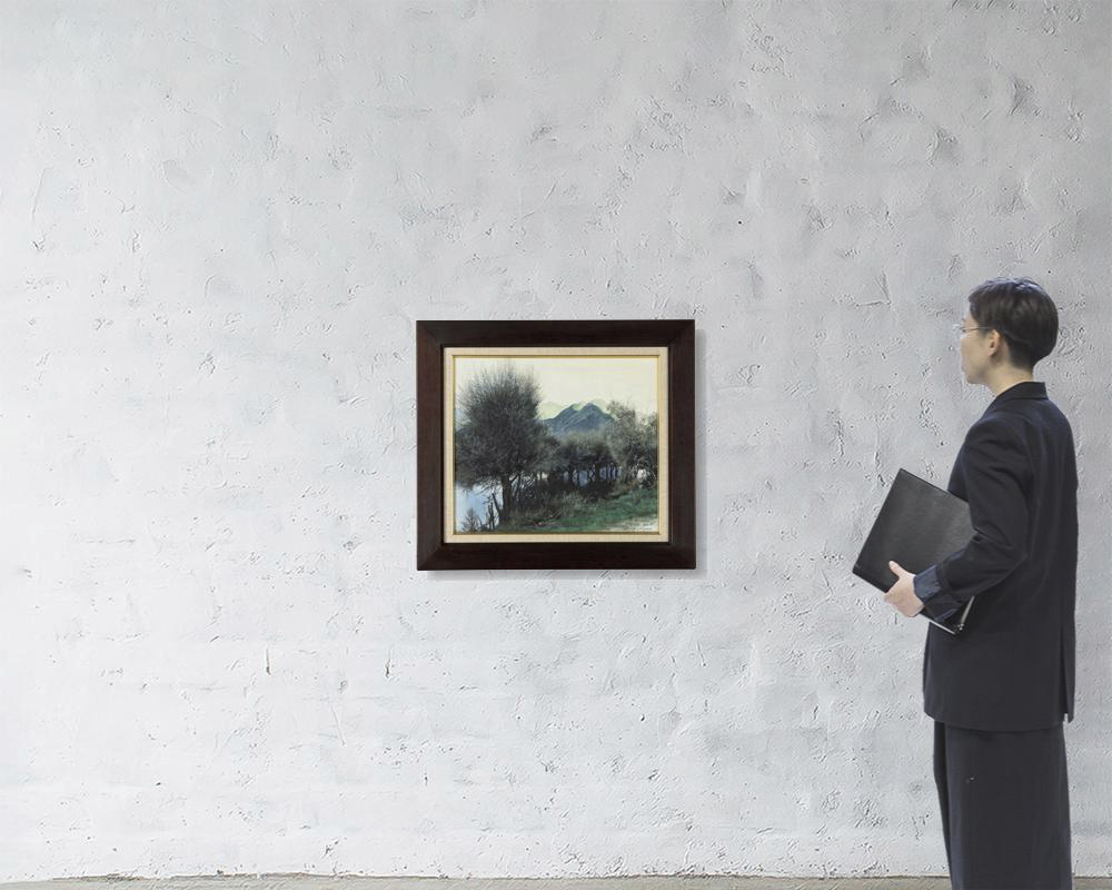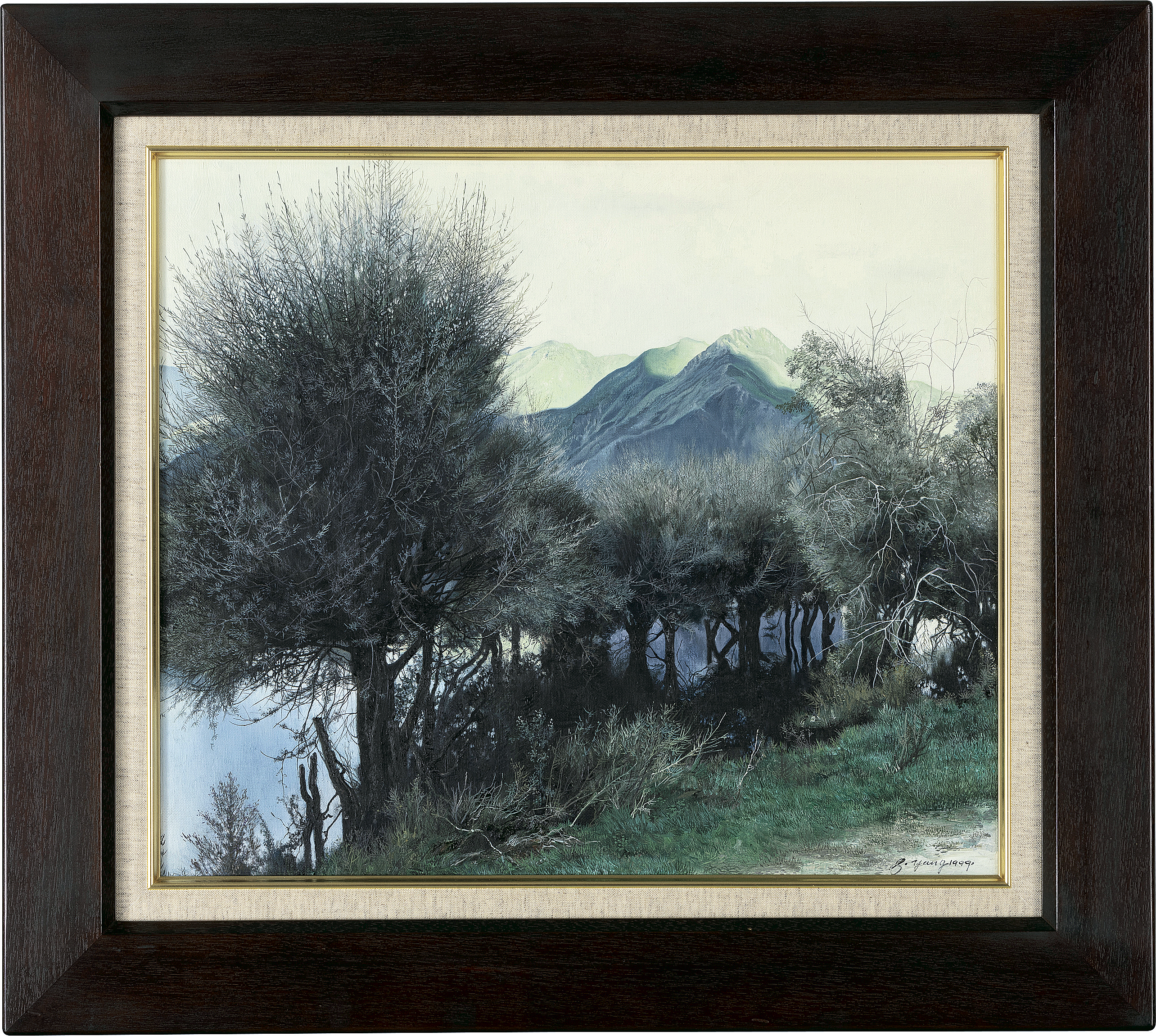 1998年 キャンバスに油彩 M12号 サイン有 もう1点は【山と木々】(1999年 F10号 他は表題と同データ) 2点共額付
