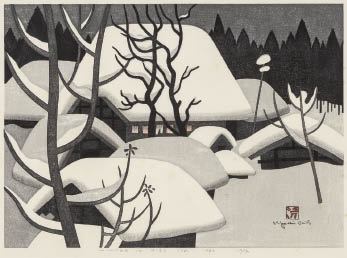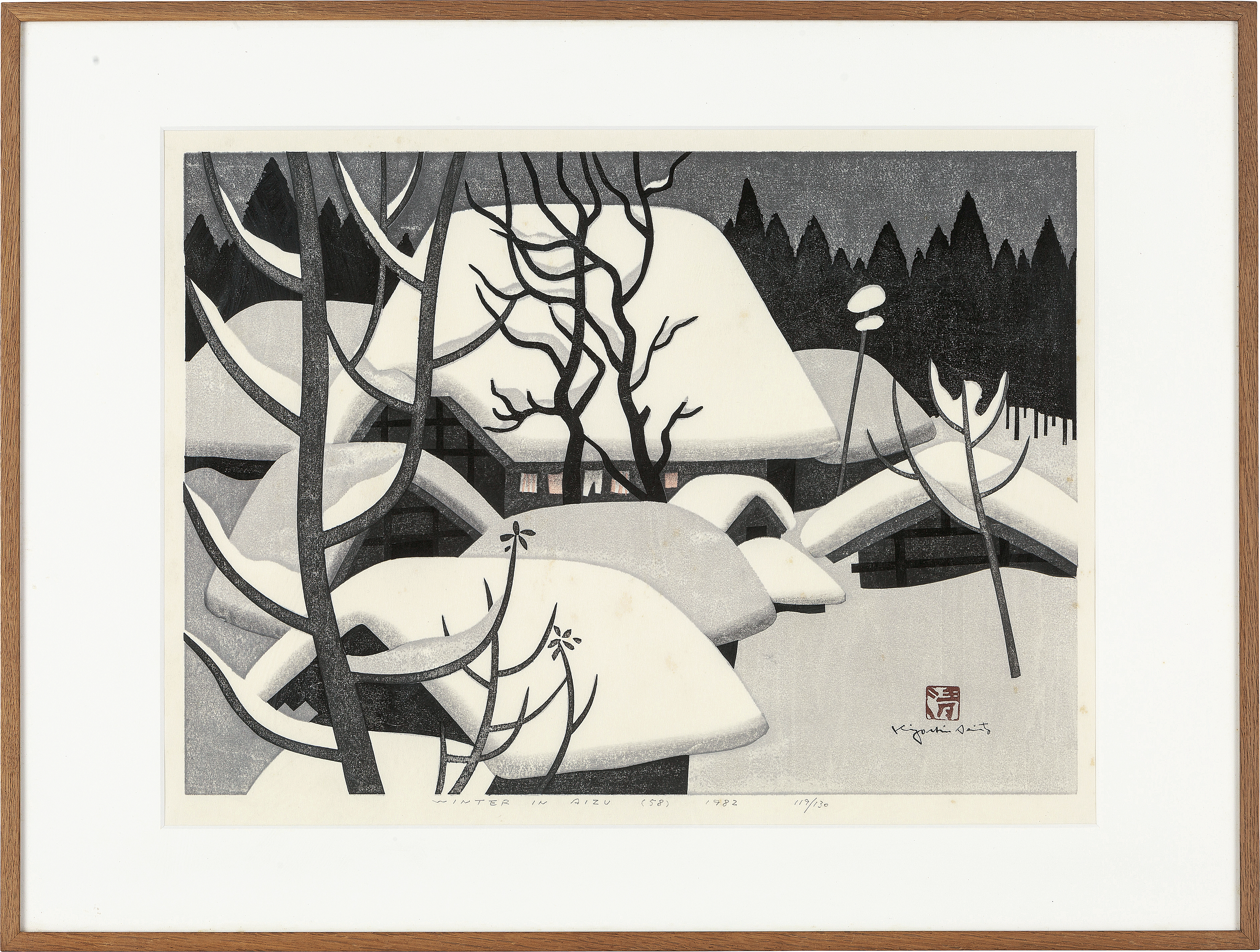 1982年 木版 38×52.8cm サインと印有 ed.130 シートサイズ 46×60.3cm シート全体に薄いヤケ、数ヶ所にシミ 裏面縁沿い2ヶ所にテープの剥し跡 額付