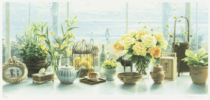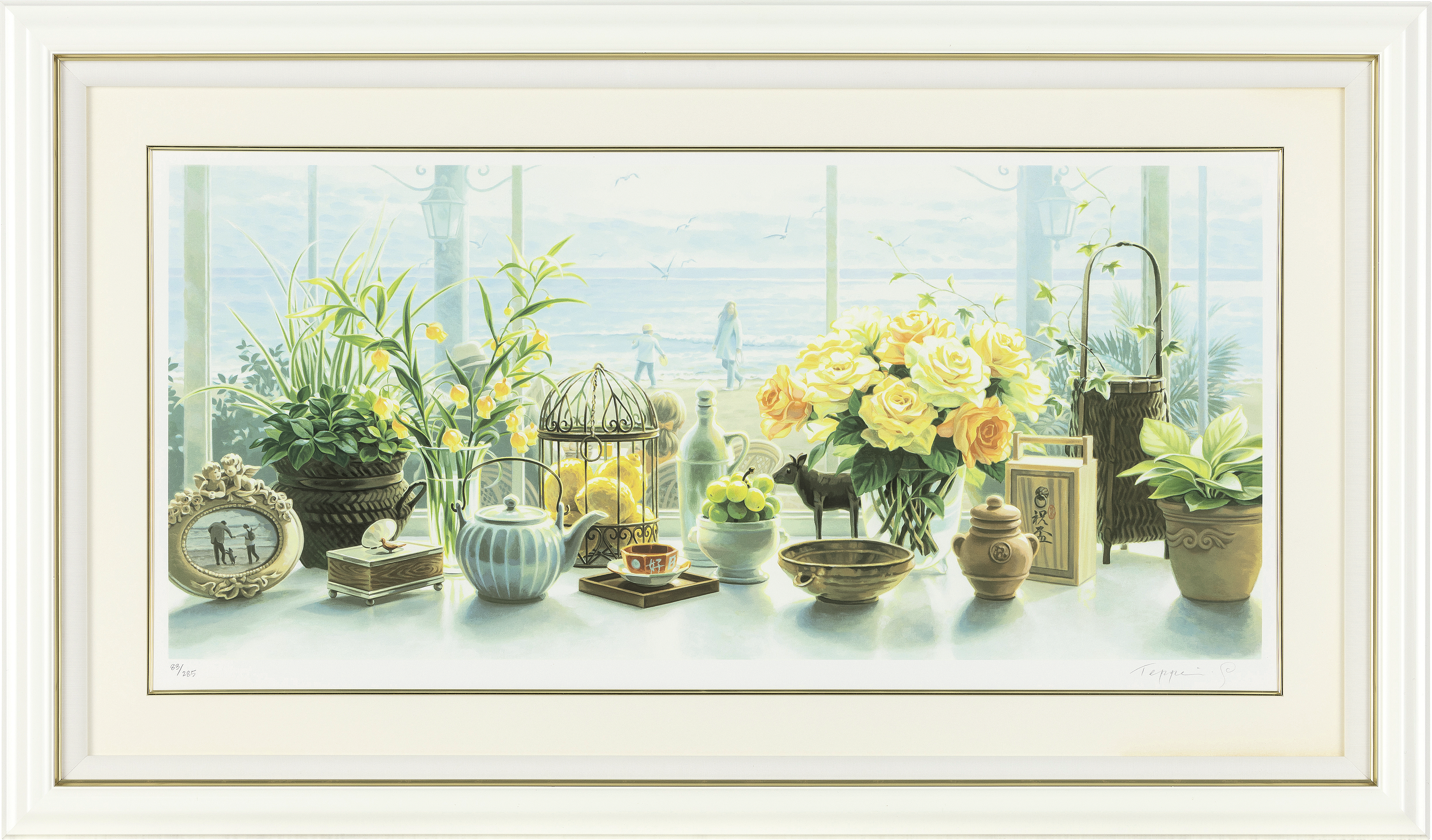 求龍堂(2002)P.166 2000年 シルクスクリーン 41×91cm サイン有 ed.285 マージン数ヶ所に小さなシミ 版面は大体良好 額付*