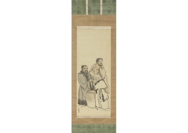 絹本・彩色 落款と印有 軸装 108.3×42.6(絹本)cm 全体/206.3×61.8cm シミ 箱付