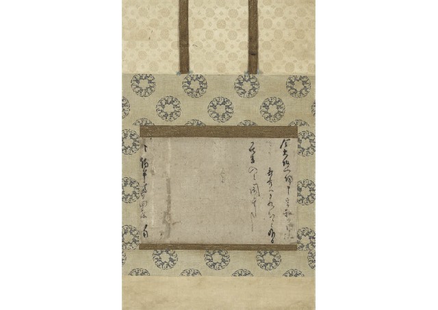 紙に墨 落款有 軸装 24.5×36.4(紙)cm 全体/99.1×49.5cm ムシクイ、直し 認得斎箱(認得斎による「松山下向之節證之」の添書 箱蓋裏に「本願寺」印の貼付 作品と箱の大きさに差異有)