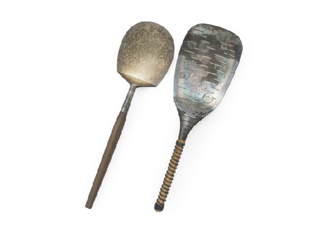 「少庵好南鐐桑柄杓子」/L21.4cm 「仙叟好同大判形灰杓子」/L21.1cm 共箱